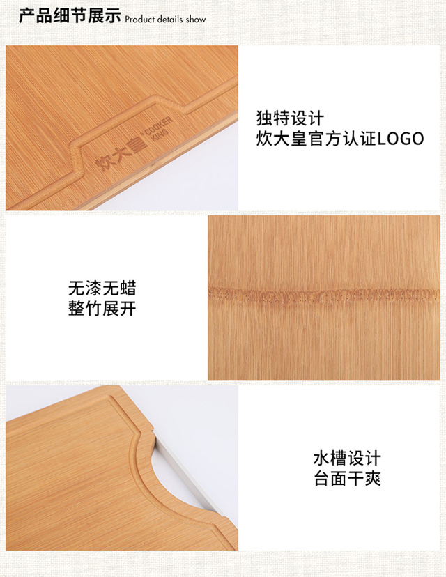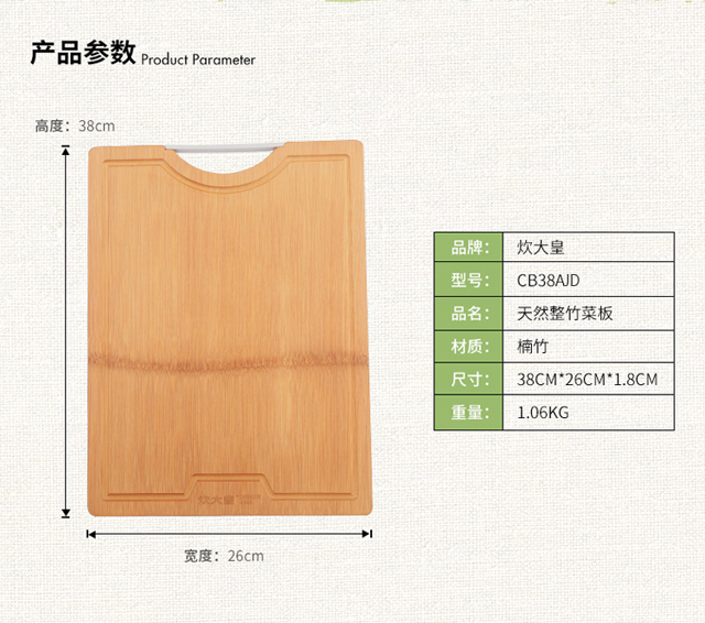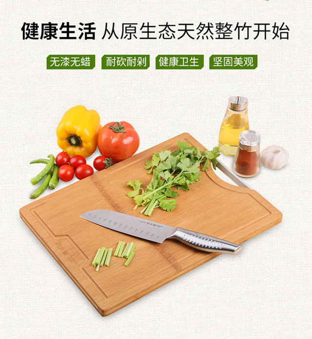 炊大皇天然整竹菜板砧板加厚非拼接防滑切菜板38*26cm