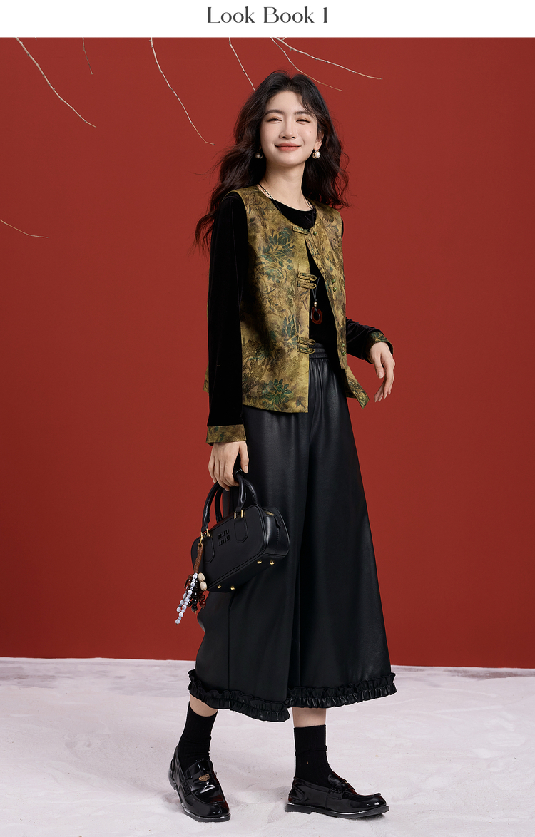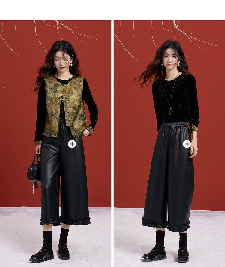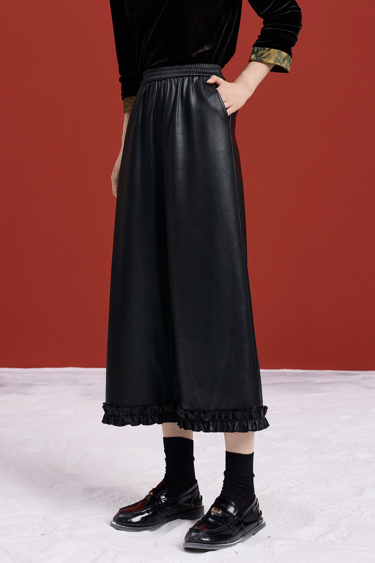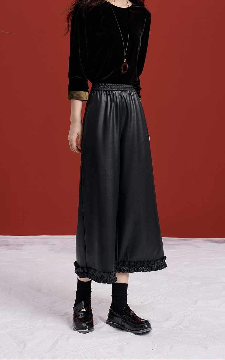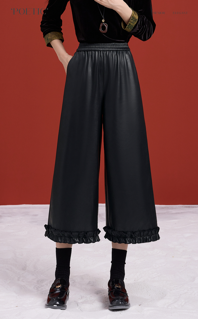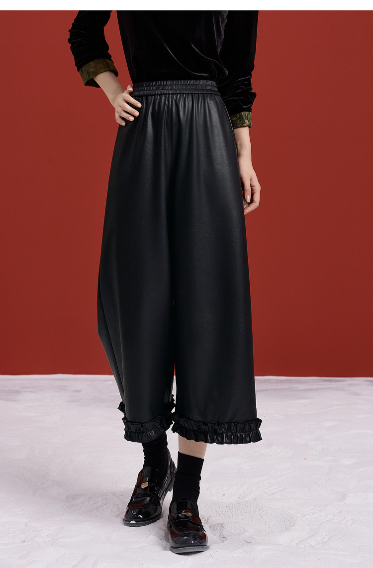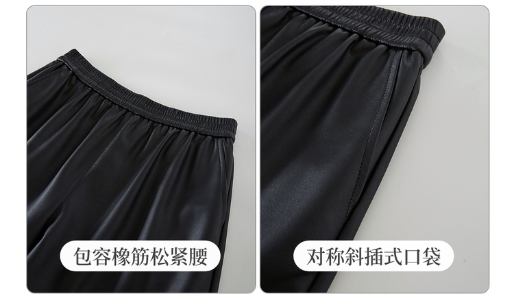 【12/10新品6折】熙世界哑光PU皮八分阔腿裤女秋冬2025新款宽松小个子九分休闲皮裤