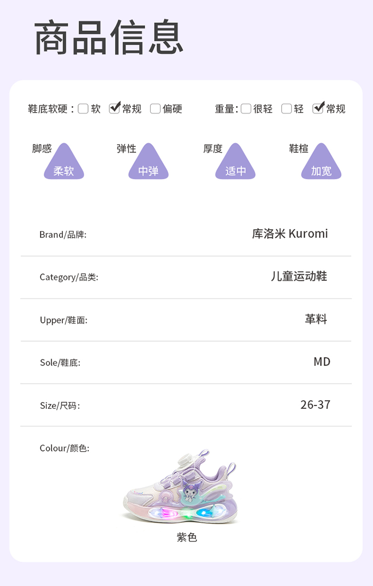 hellokitty童鞋春秋库洛米儿童运动鞋26-37码 K5546006