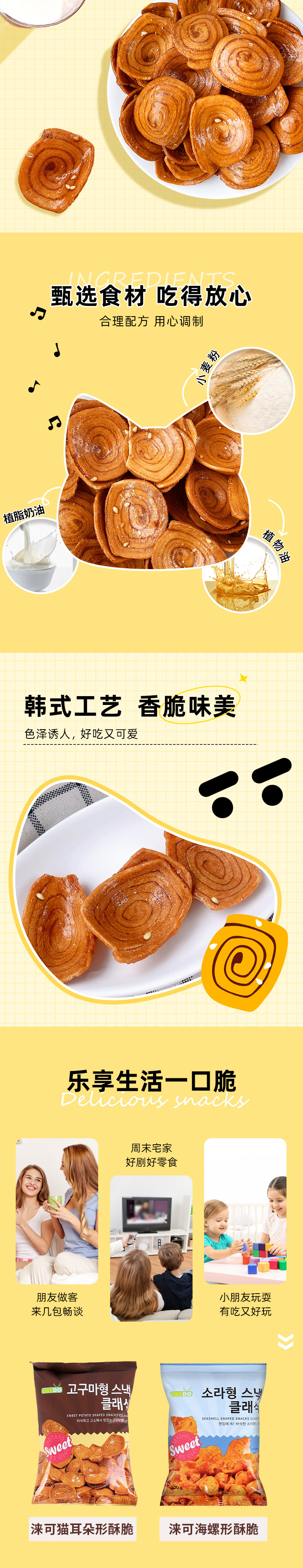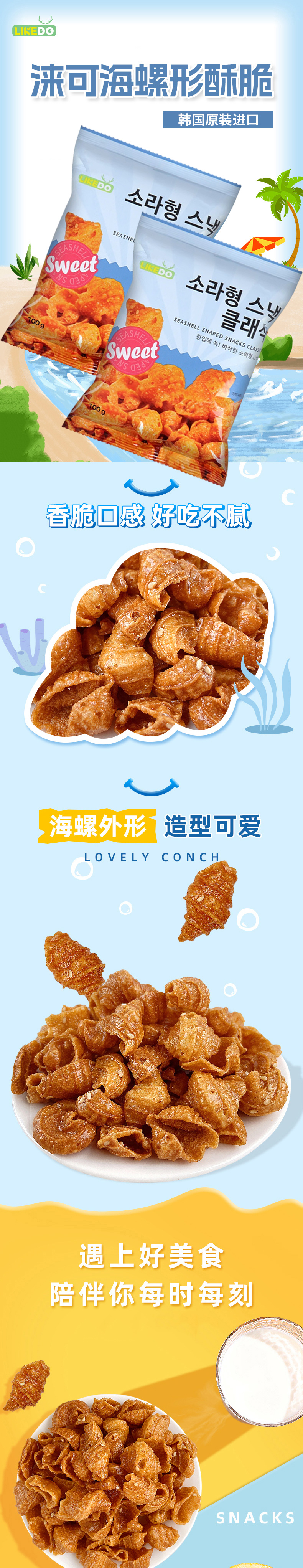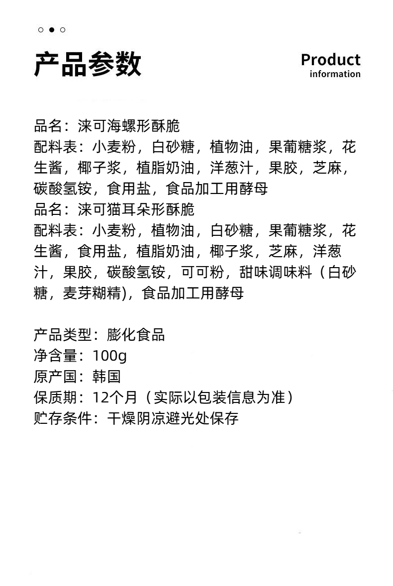 韩国进口涞可猫耳朵形|海螺形酥脆100g