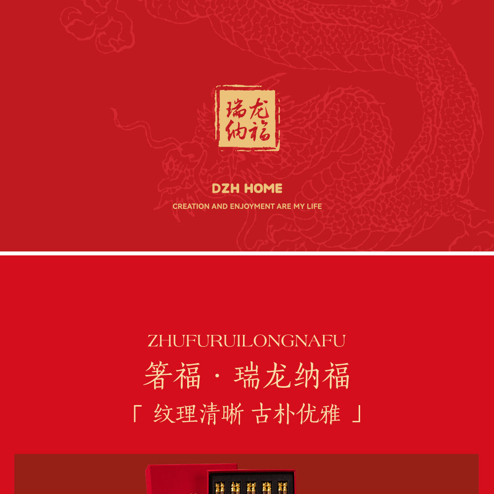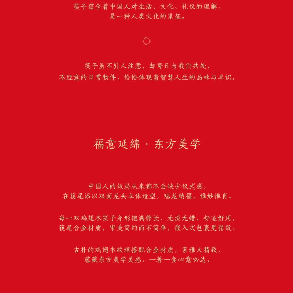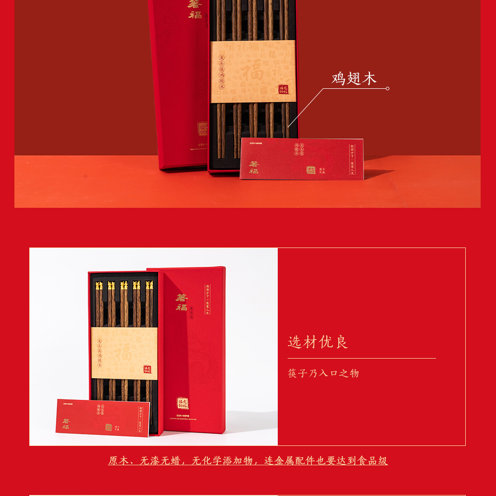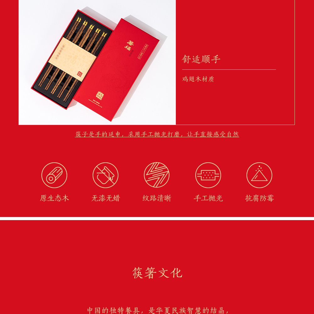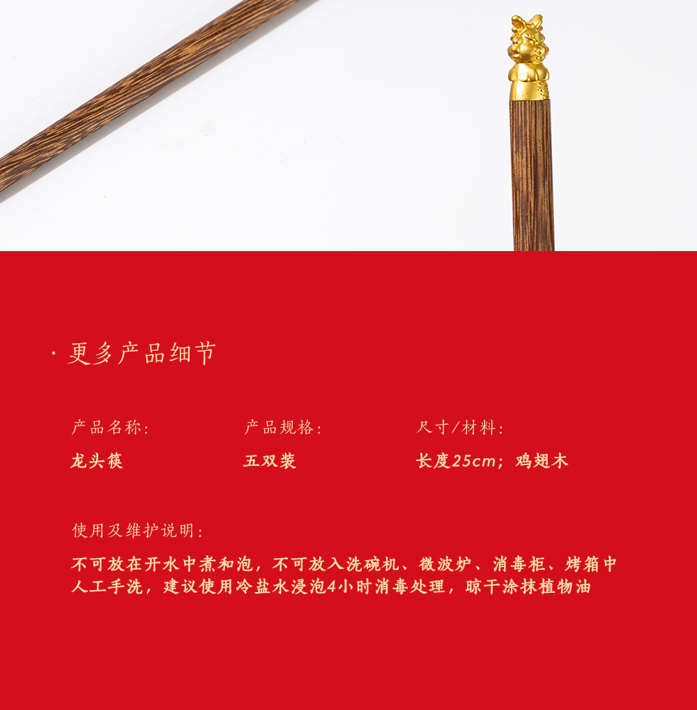 中国筷 | 箸福龙头筷 礼盒5双装 优选原生态鸡翅木纹路清晰 无漆无蜡抗腐防霉