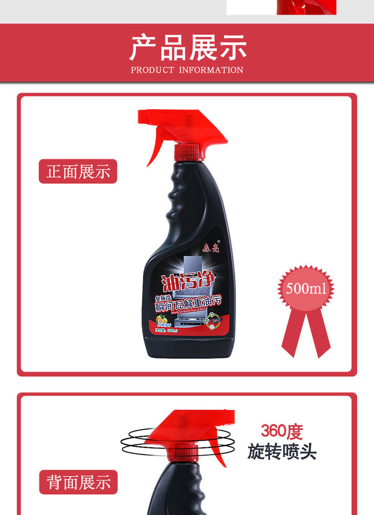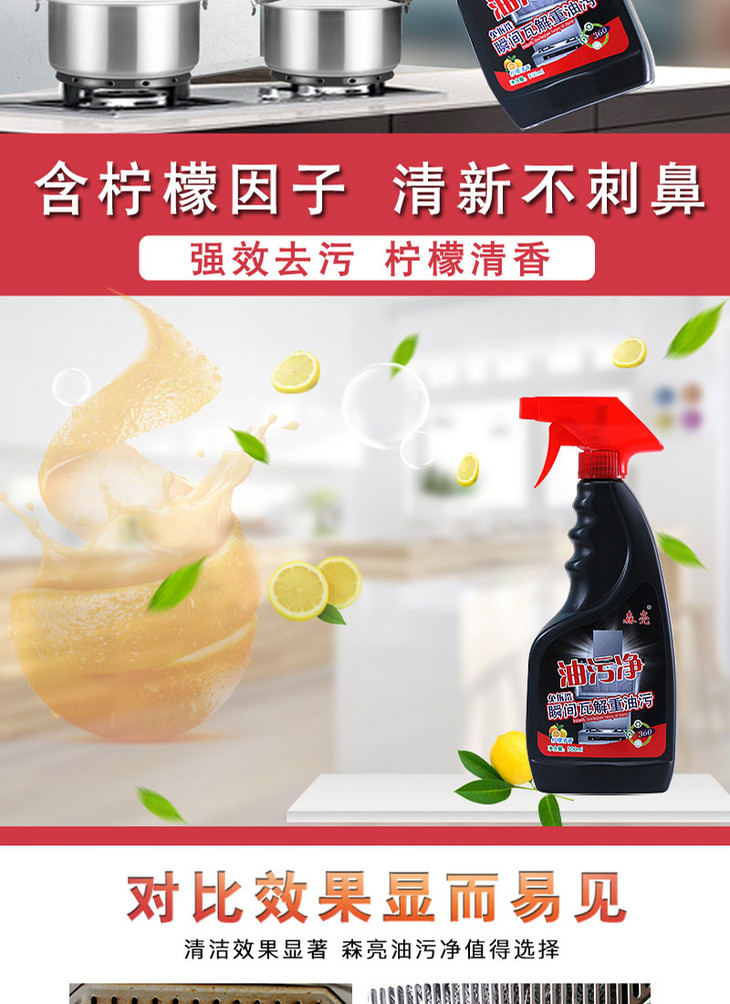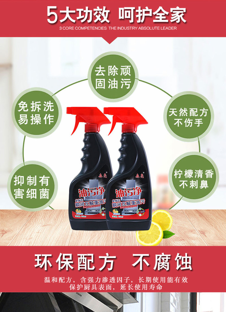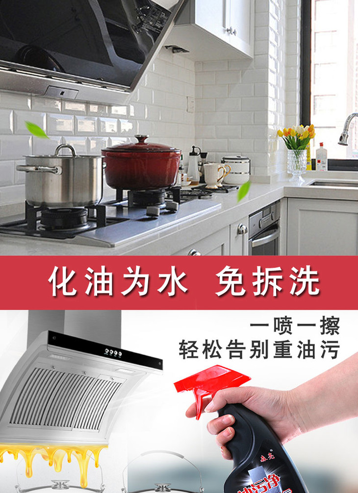 【重油克星 一擦就净】厨房油污净 轻松去油亮洁如新 去除顽固油污 免拆洗易操作 柠檬清香不刺鼻 家用厨房油烟机清洁剂清洗剂 500ml/瓶
