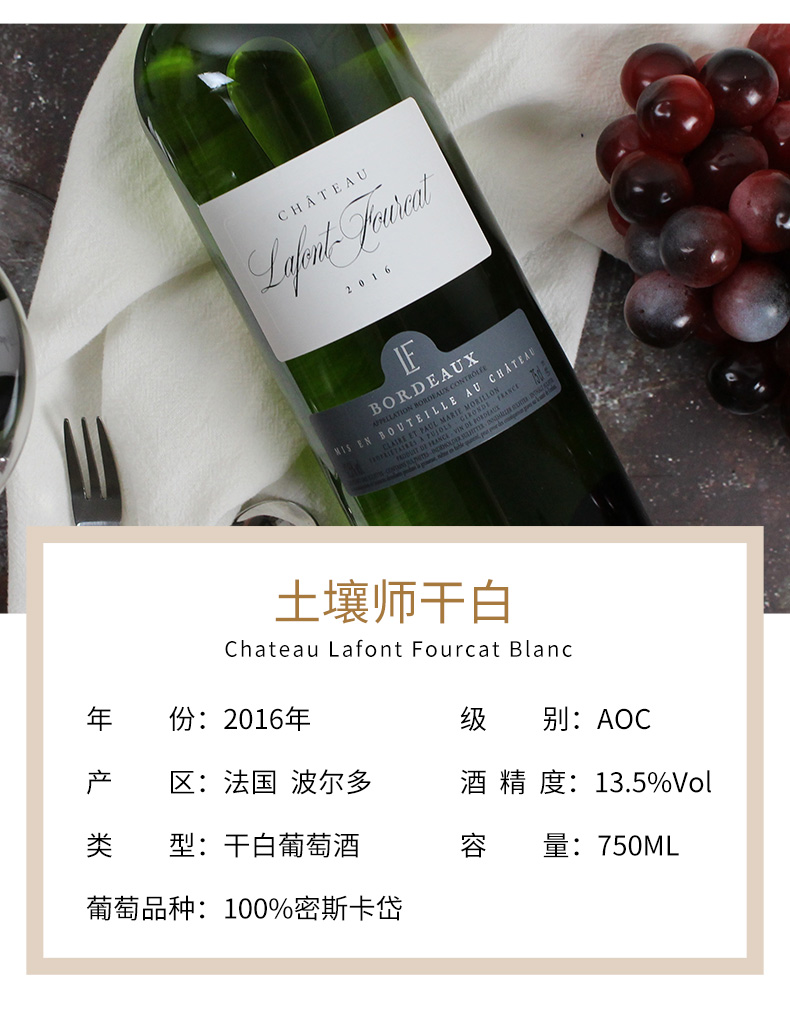土壤师干白 Chateau Lafont Fourcat Blanc 2016年 750ML 48小时发货