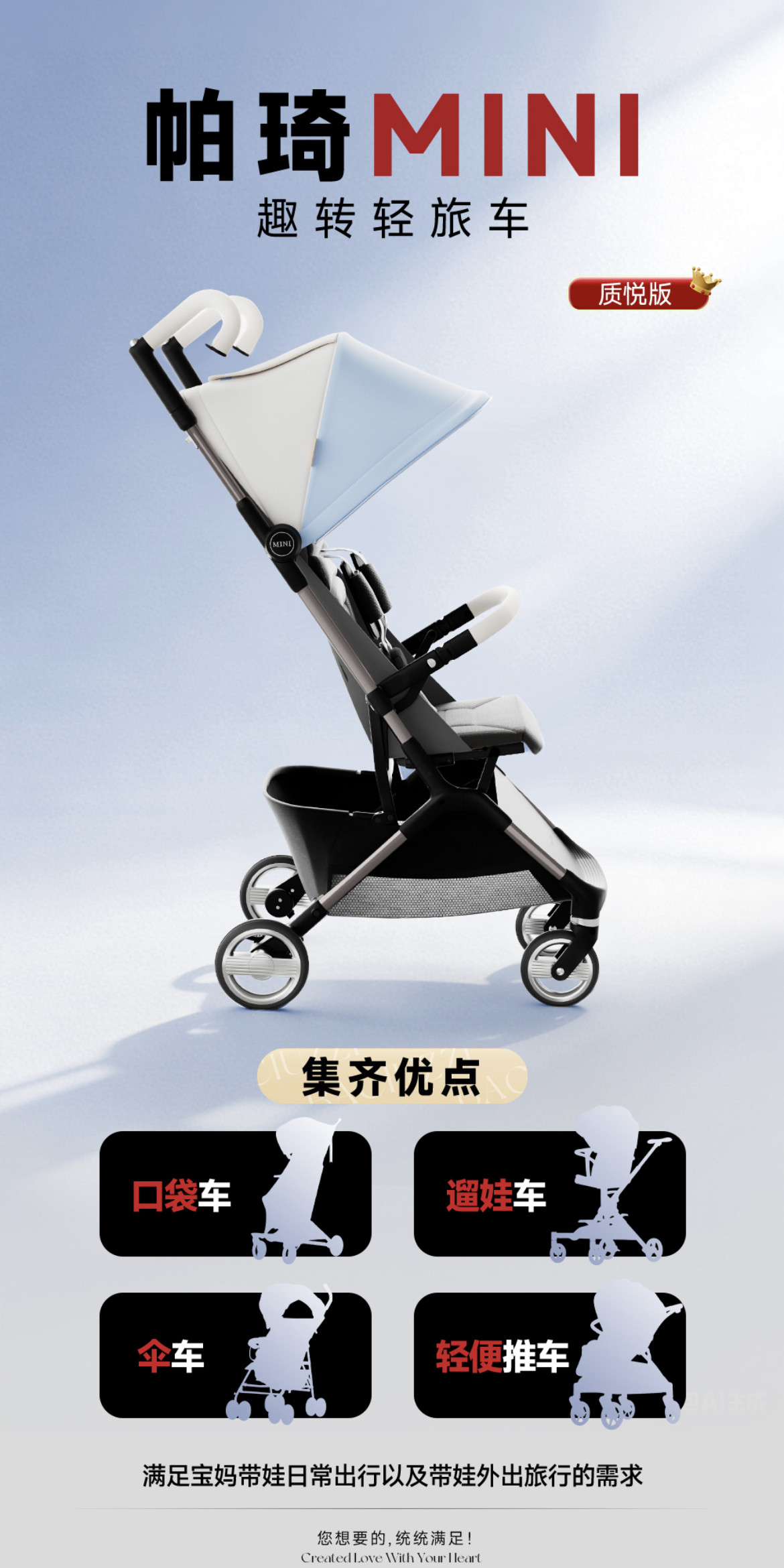 帕琦mini口袋推车婴儿车轻便折叠儿童遛娃神器宝宝登机旅行溜娃车