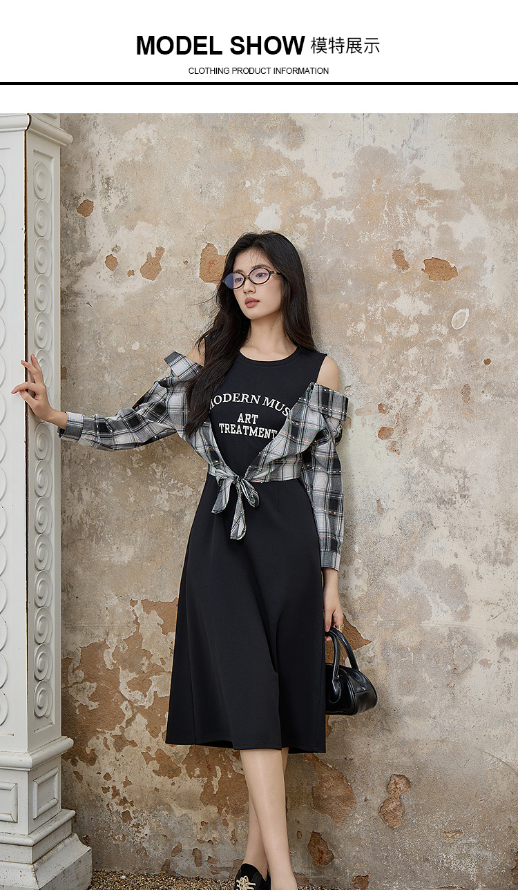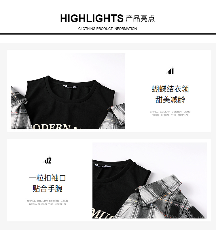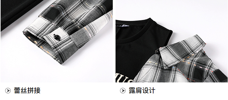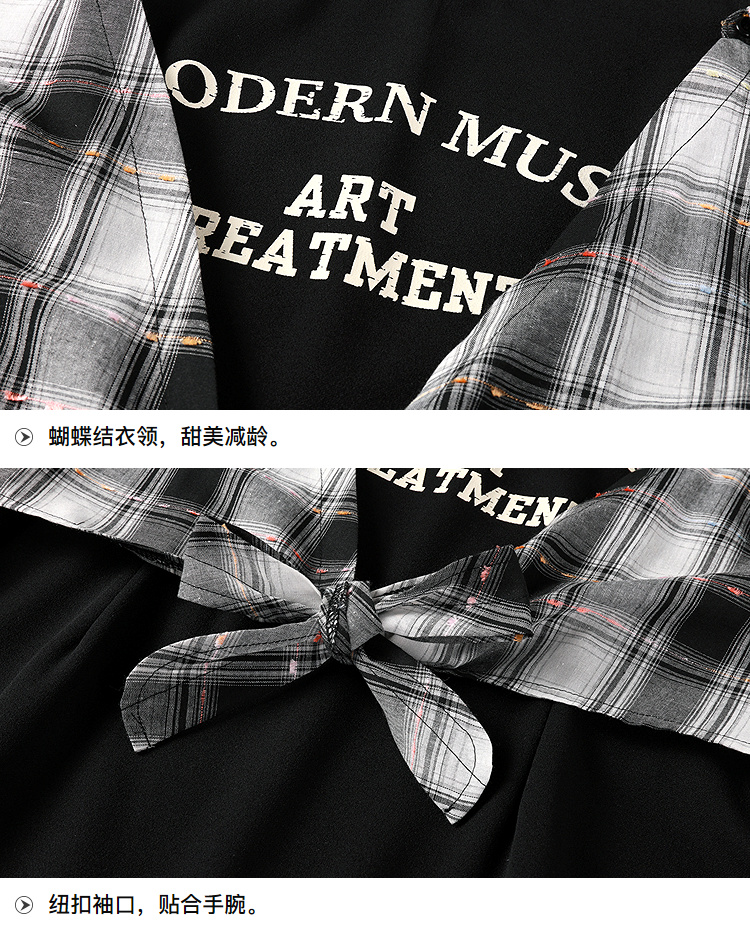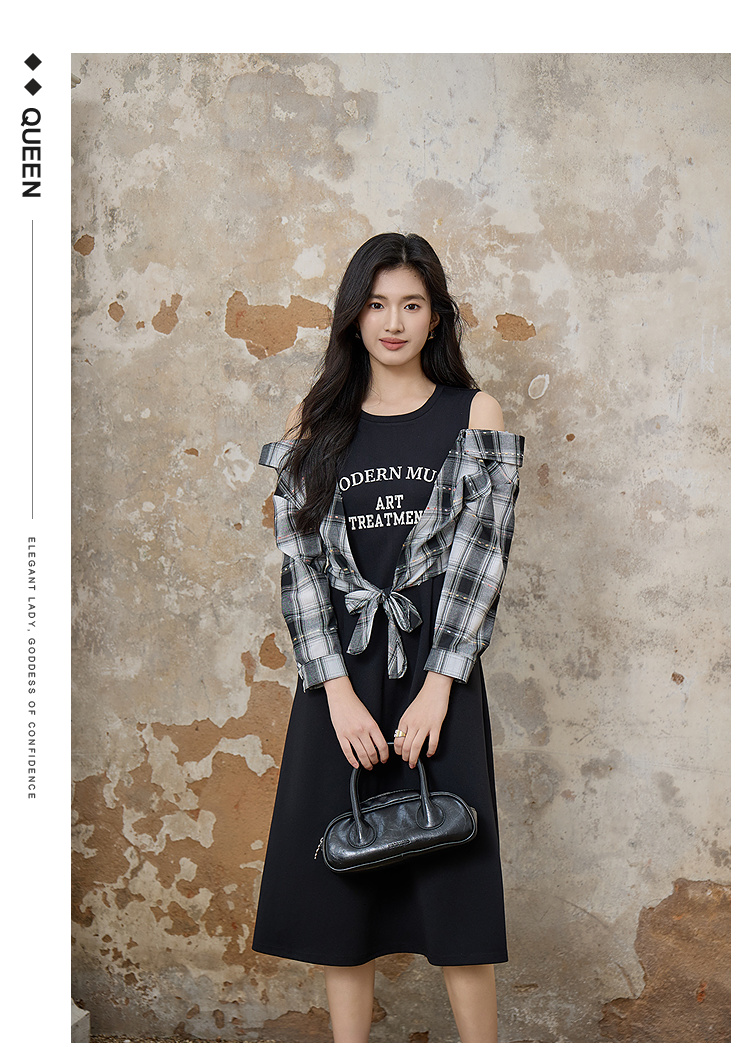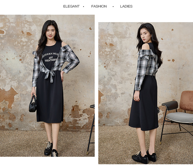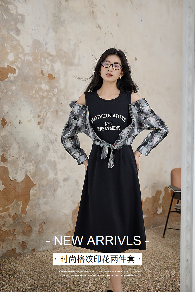 奢姿大码女装2025秋季减龄格纹字母印花两件套胖妹妹时尚圆领套装9953935147
