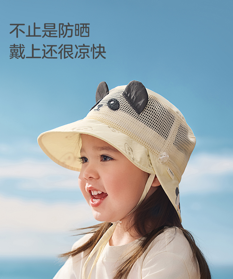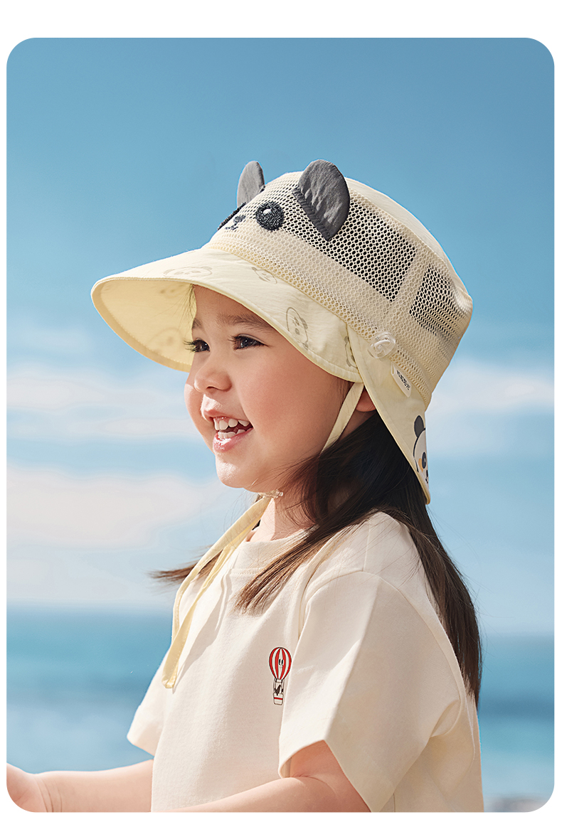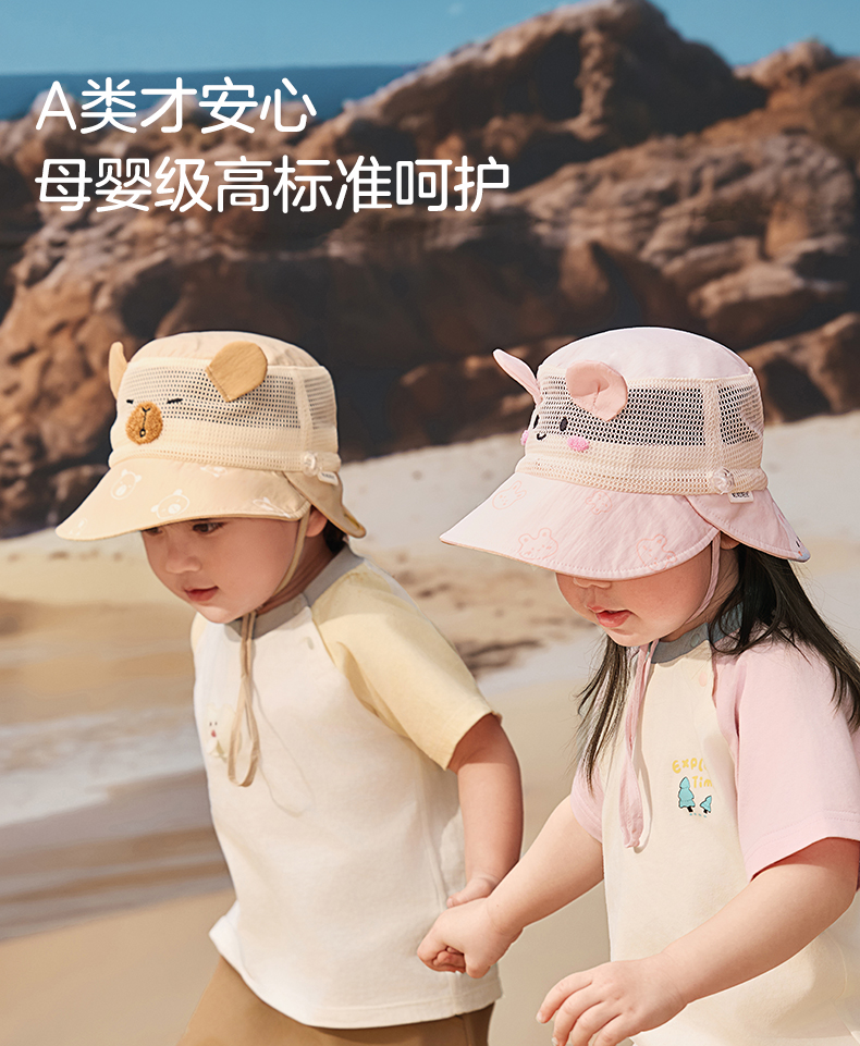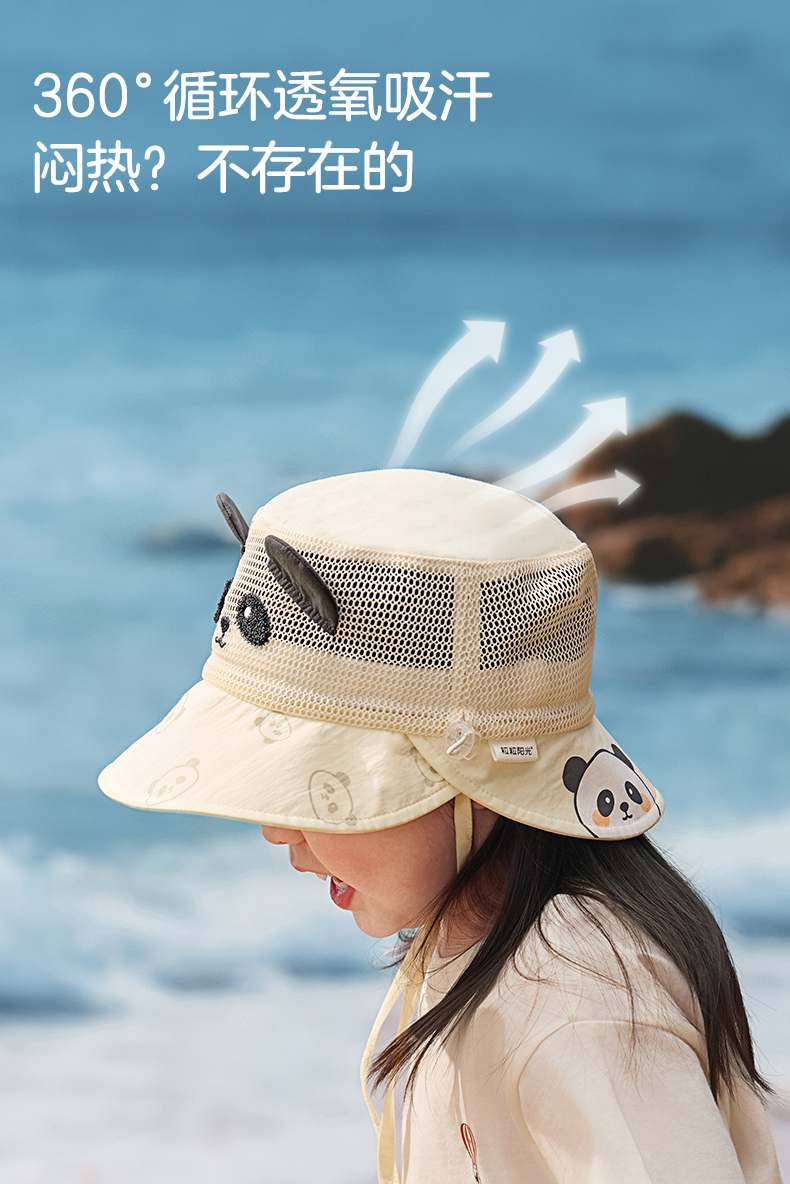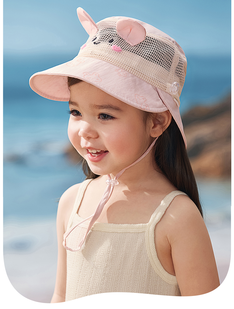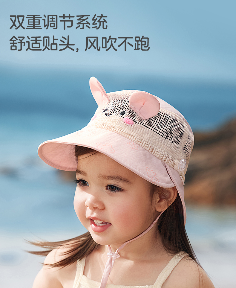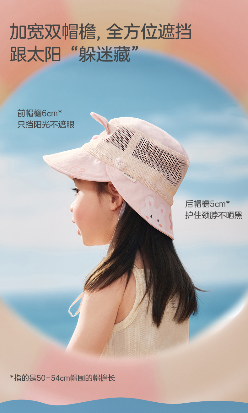粒粒阳光儿童防晒帽女童帽子渔夫帽网孔透气男童遮阳帽夏