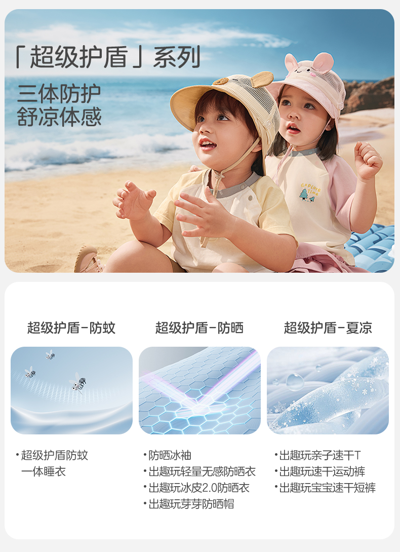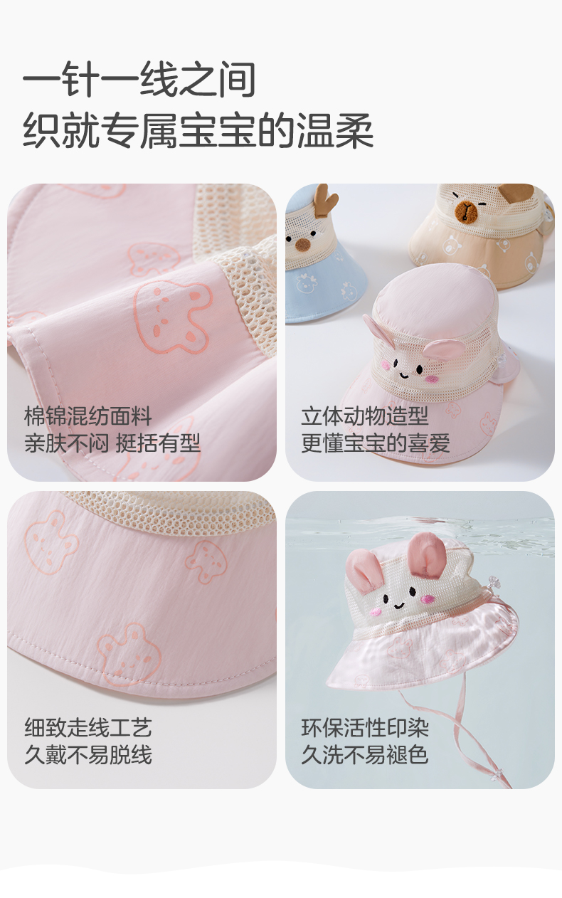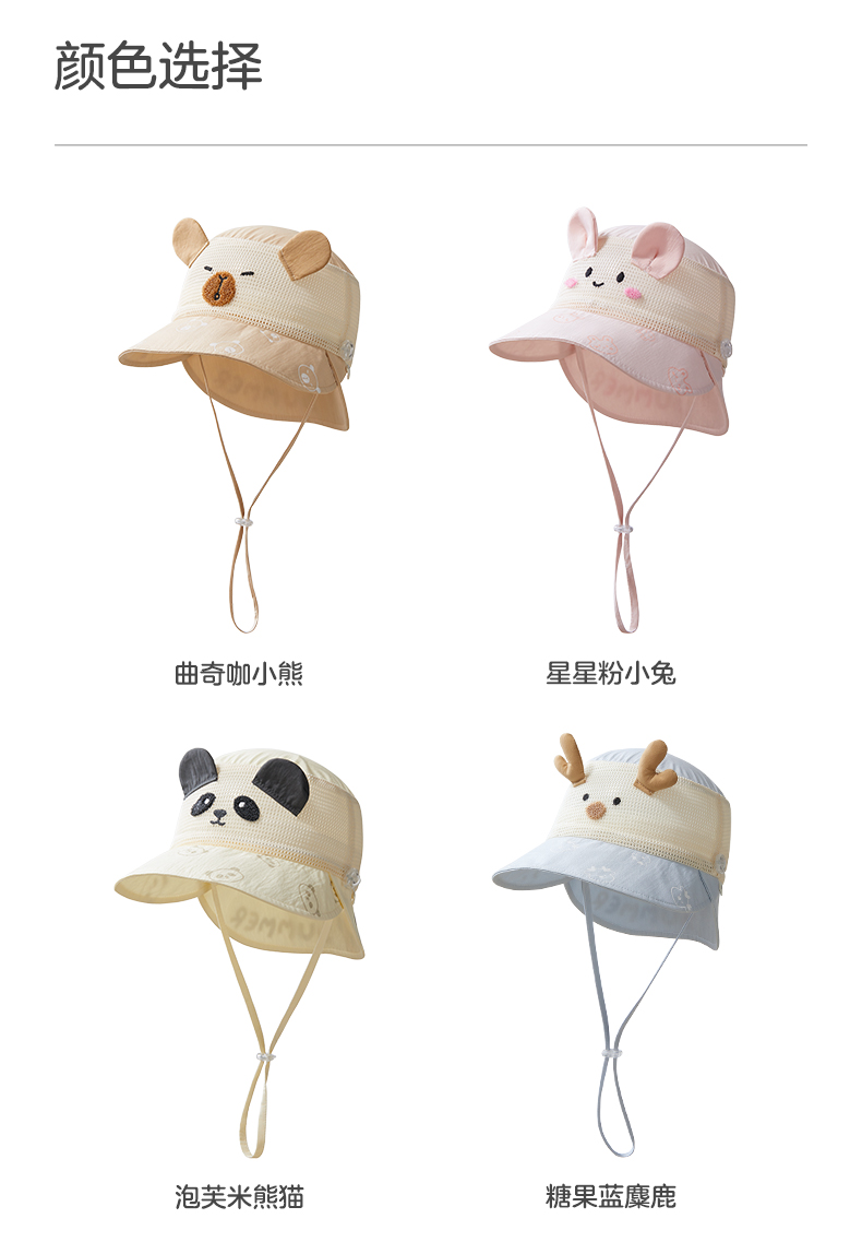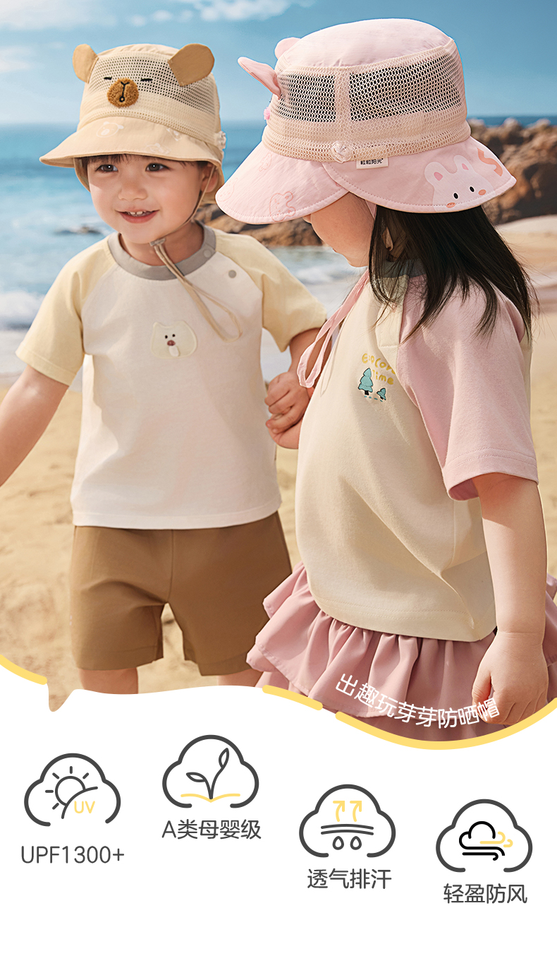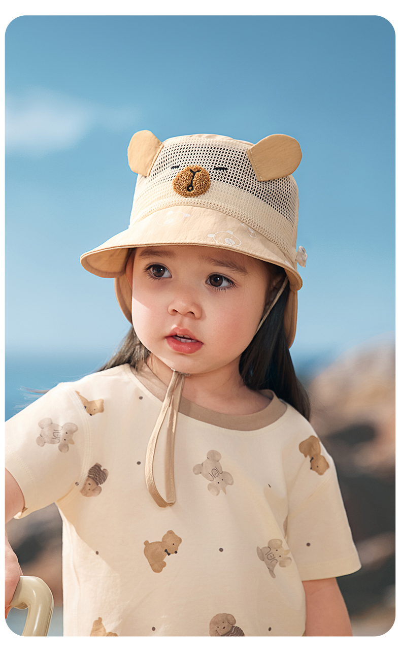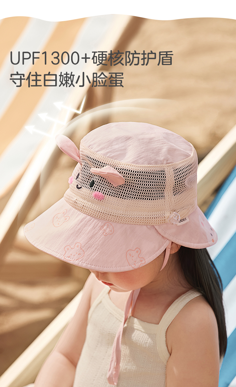 粒粒阳光儿童防晒帽女童帽子渔夫帽网孔透气男童遮阳帽夏