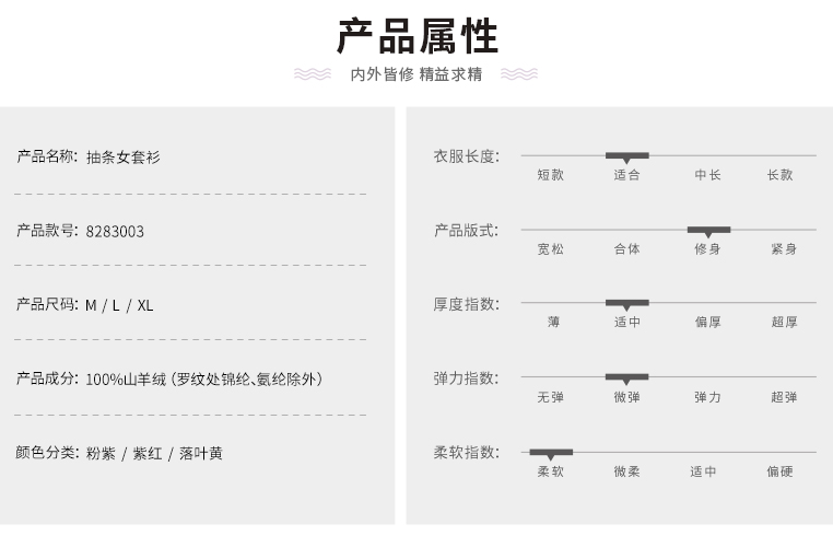 | 服装版型: 修身 | 材质成分: 山羊绒(羊绒)100% |