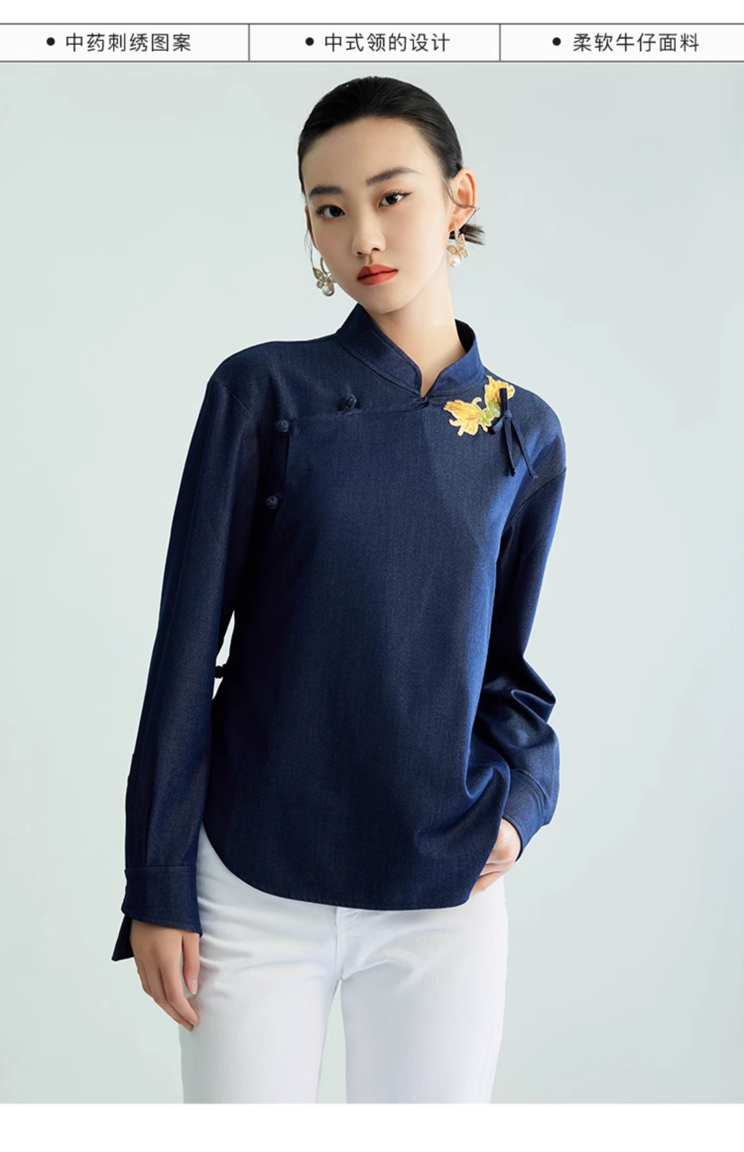 郭培线上成衣【“药”爱自己】佛手花刺绣斜襟中式开衫衬衫