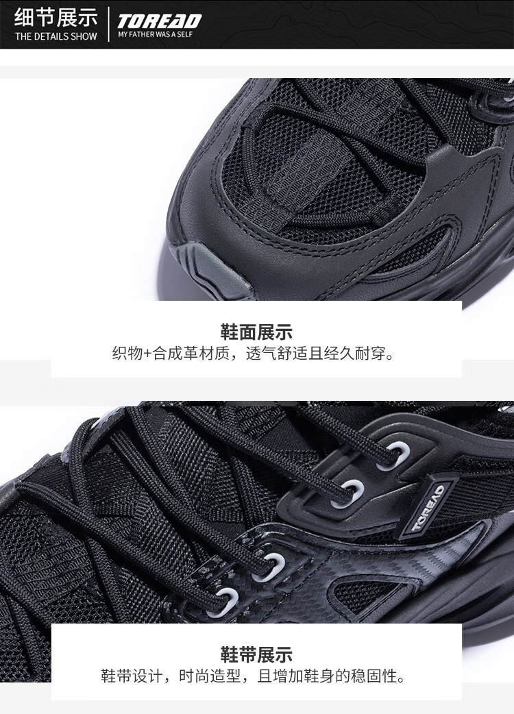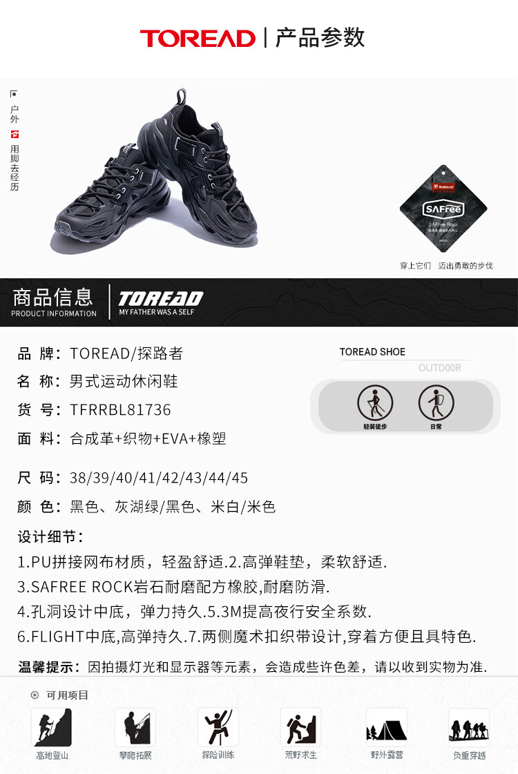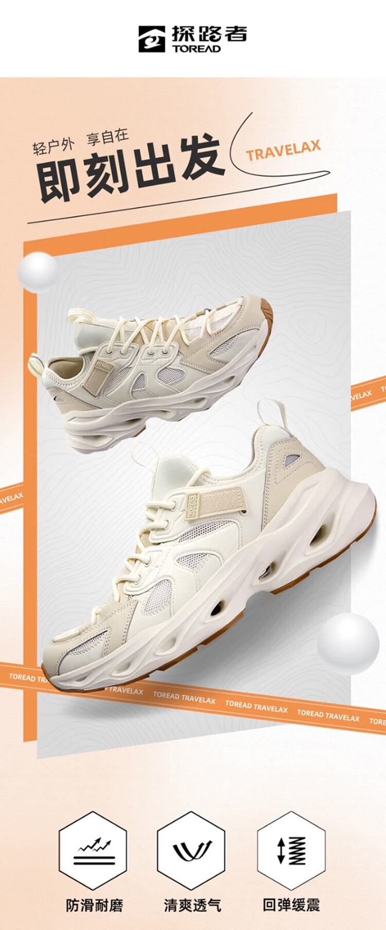 探路者(TOREAD)老爹鞋 男士防滑舒适透气徒步鞋 户外休闲登山运动鞋TFRRBL81736-G01X