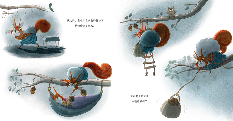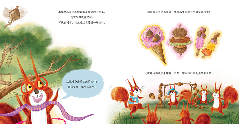 本书围绕着两只性格迥异的松鼠展开,热爱分享、充满活力的格里普打算举办一场盛大派对,准备了各种以坚果为主题的美食和游戏。而性格乖戾、自私的泰瑞尔却在派对前夕拿走所 有坚果,想独自享用……这本书以生动有趣的故事、活泼可爱的角色和色彩丰富的插画,吸引小读者的注意力,激发他们的阅读兴趣。它通过轻松幽默的情节,向孩子们传递分享、友 善等积极价值观,帮助孩子理解分享带来的快乐,引导他们在生活中学会与他人分享,培养良好的品德和社交能力。其充满童趣的内容和精彩的插画,还能激发孩子的想象力,为孩子带来欢乐的阅读体验。