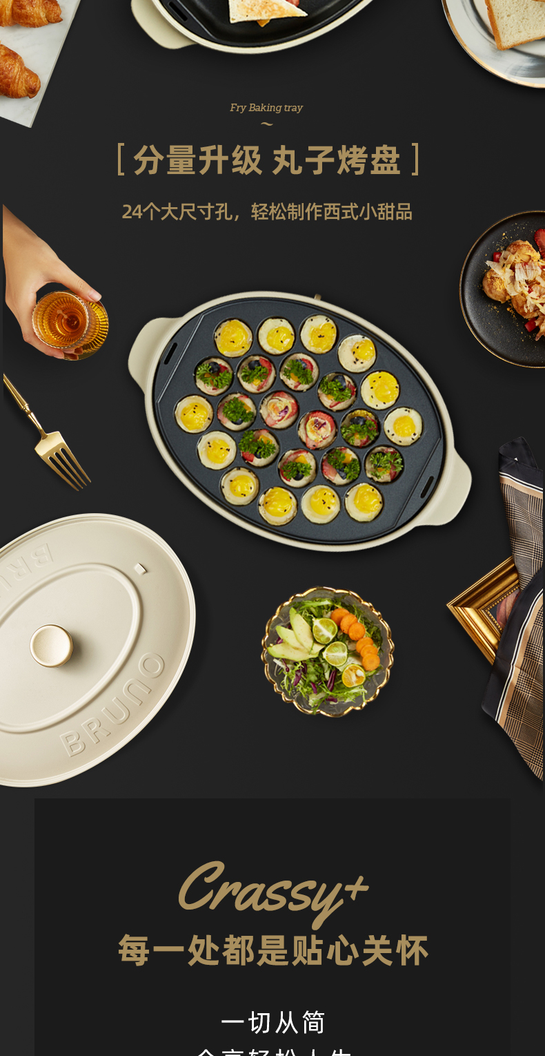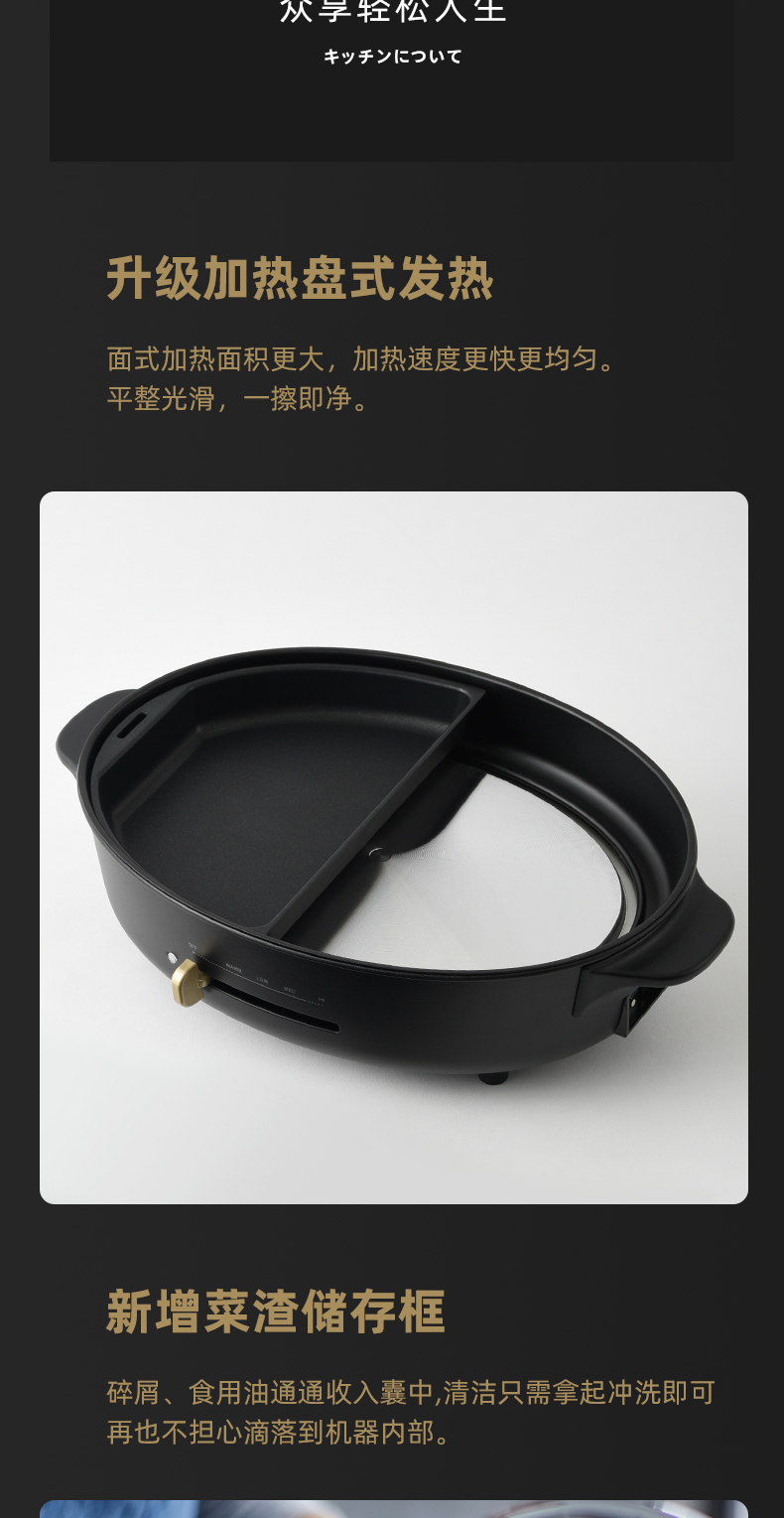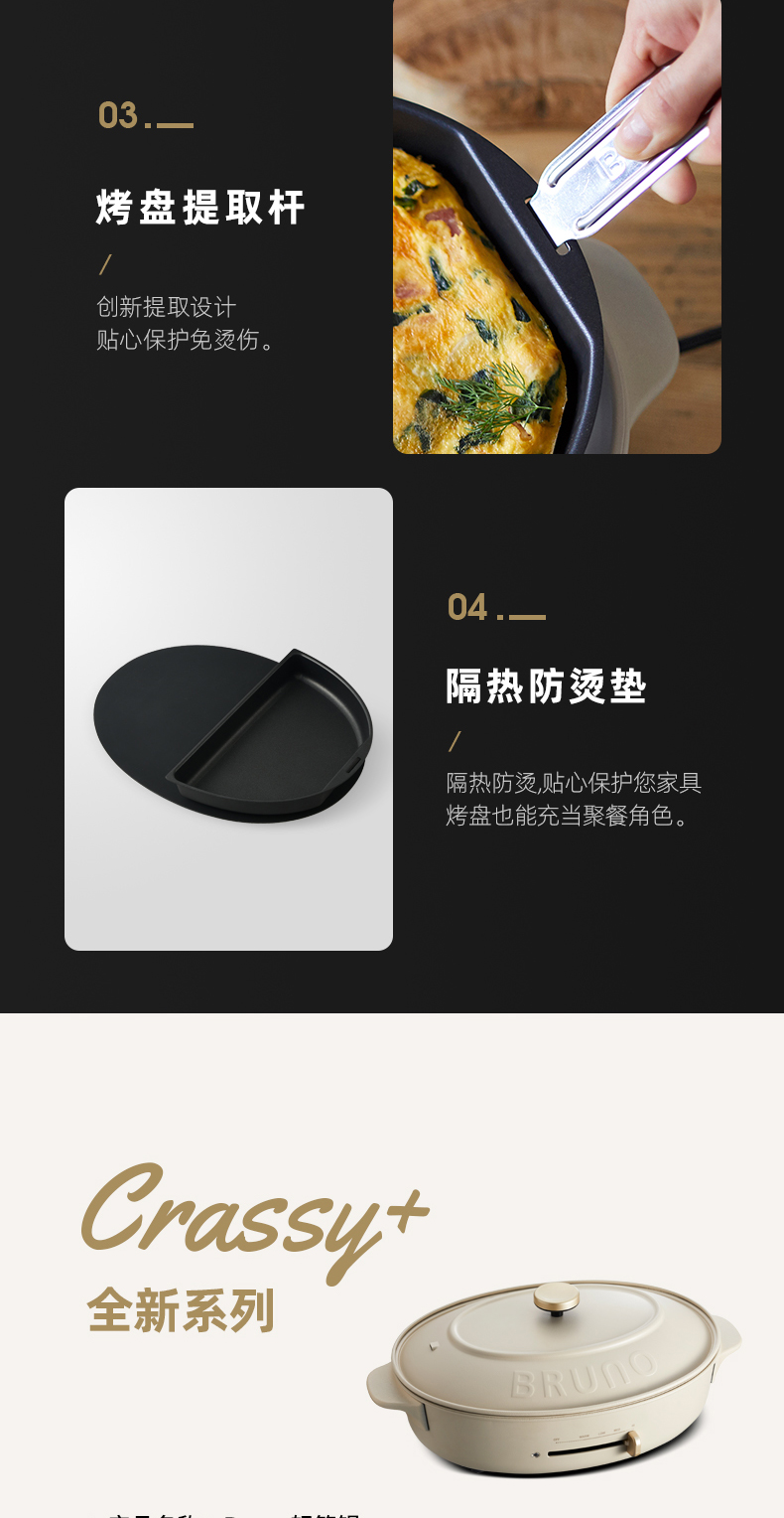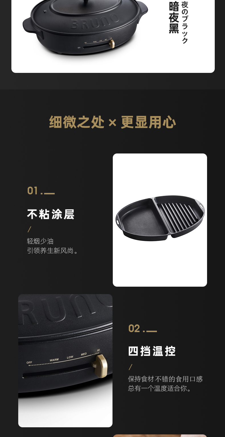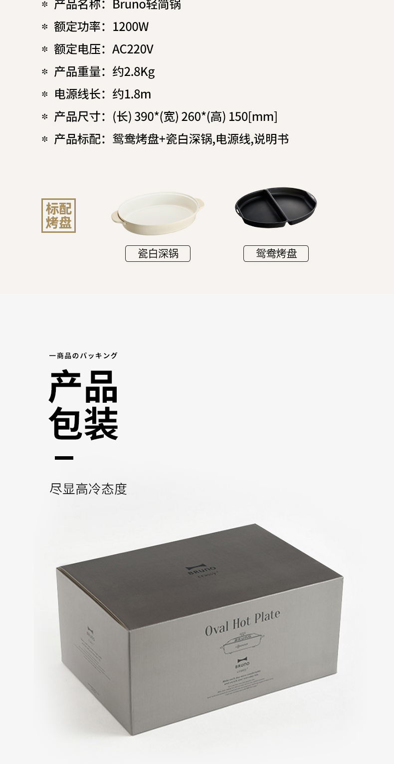 日本Bruno轻简锅电烤炉椭圆锅家用烧烤炉多功能料理锅蒸煮一体锅BOE053