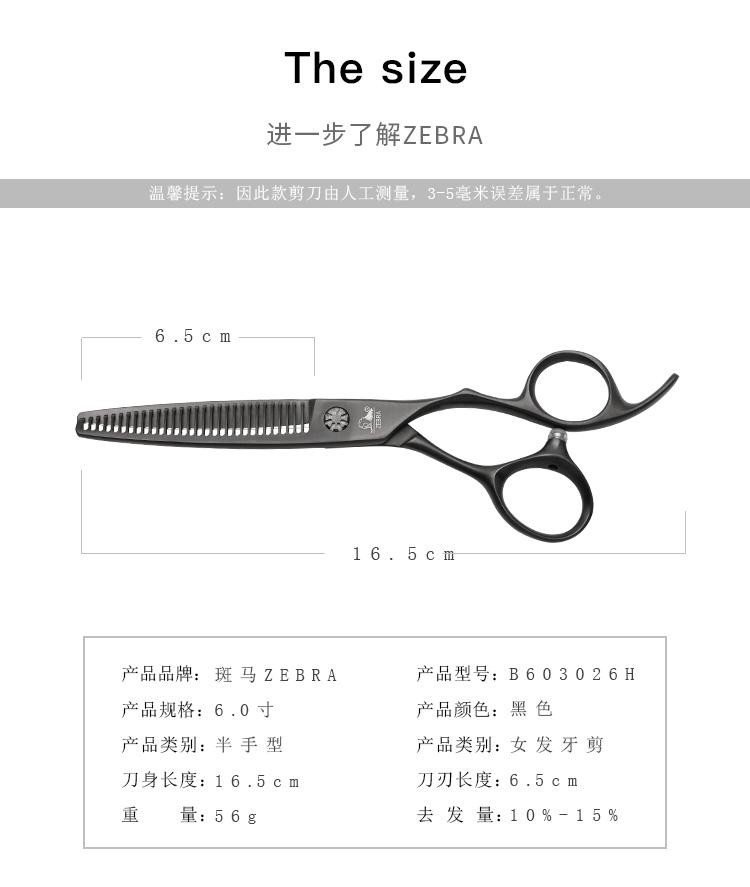 ZEBRA斑马 B603026H 镀钛 剪刀 牙剪 女发牙剪 10-15%