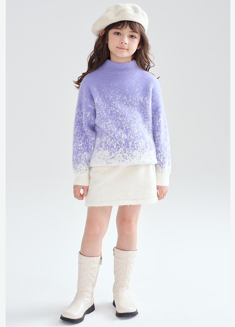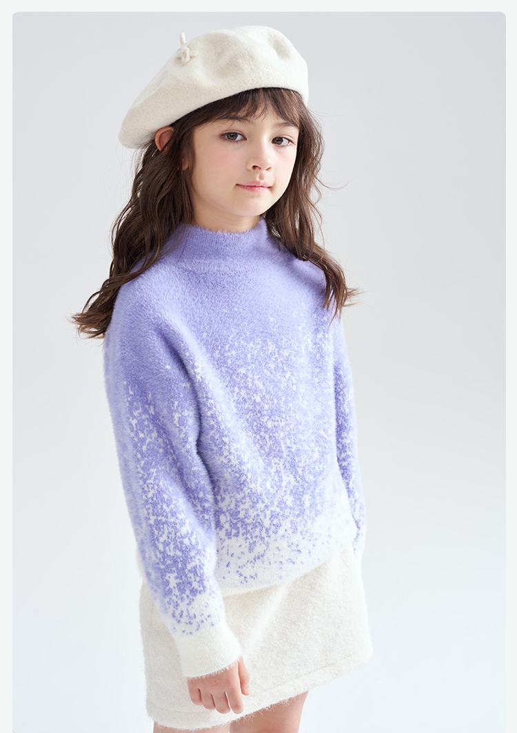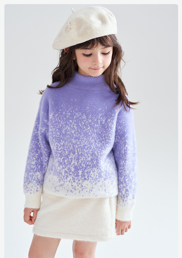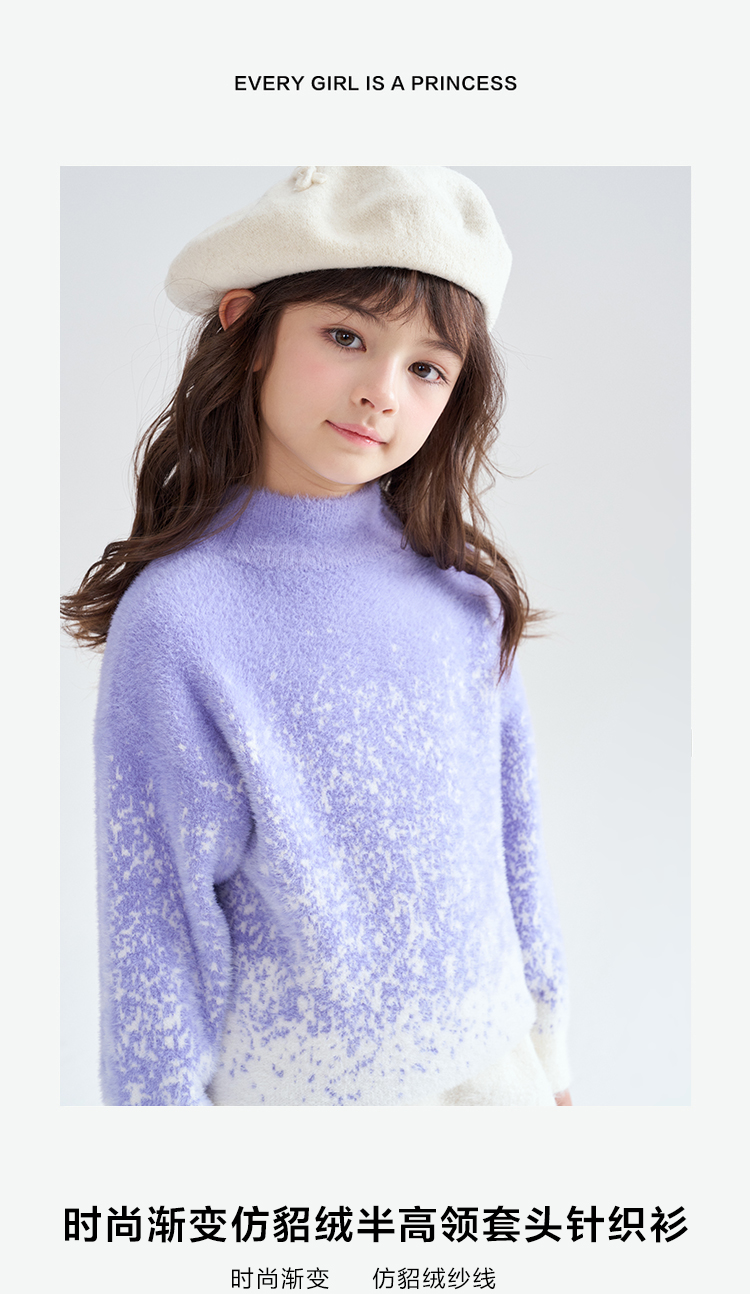 笛莎Deesha 2025冬季女童时尚渐变仿貂绒半高领套头针织衫