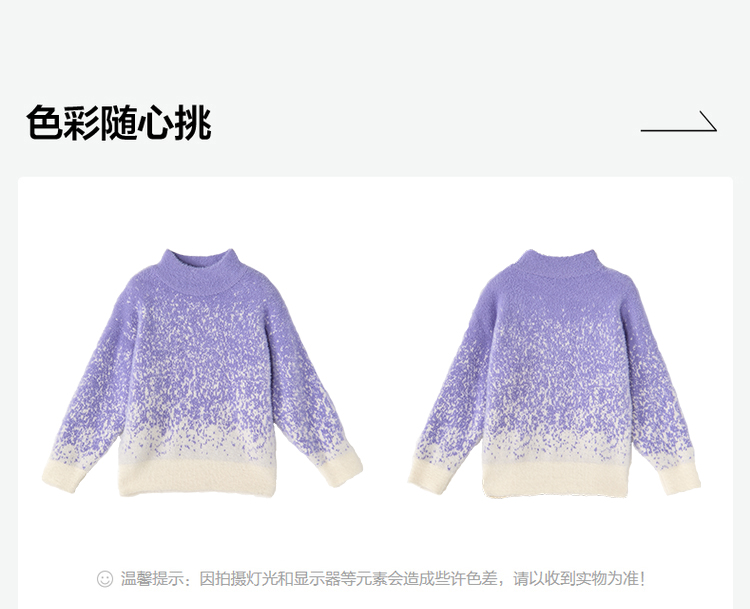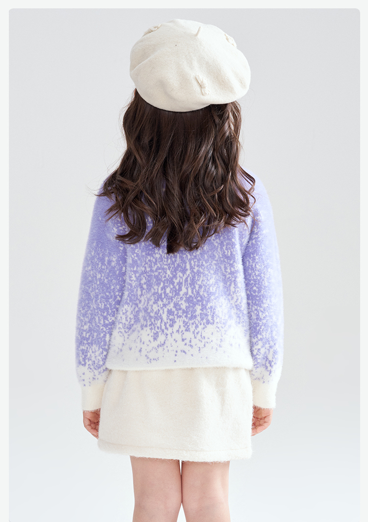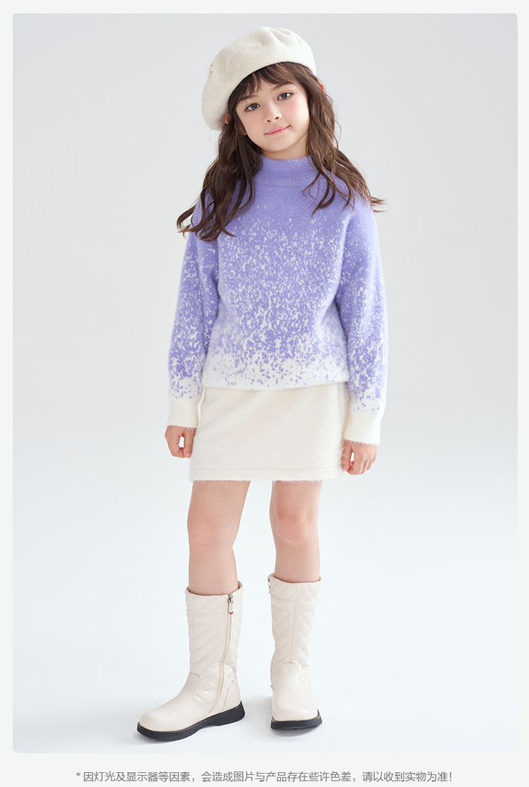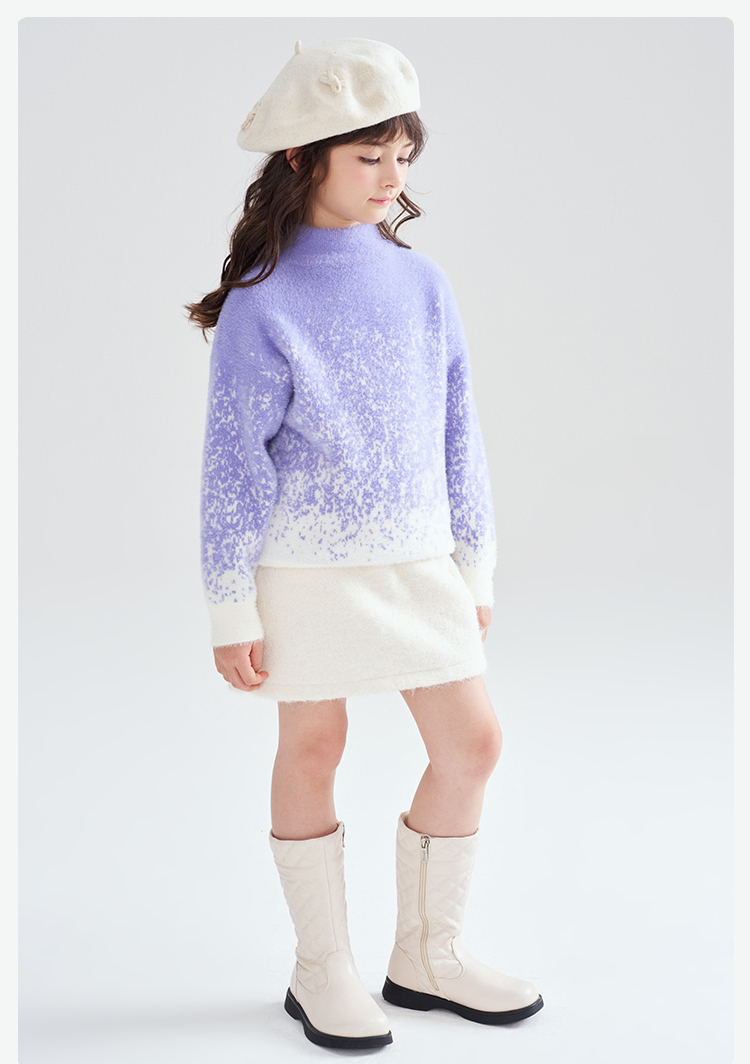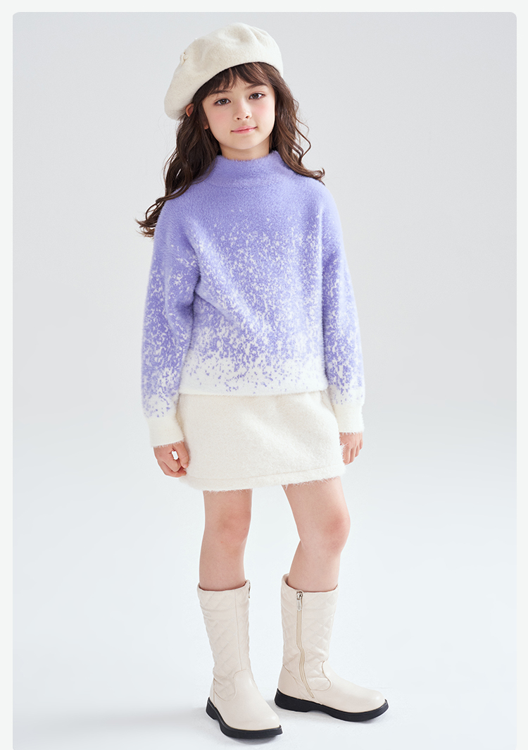 笛莎Deesha 2025冬季女童时尚渐变仿貂绒半高领套头针织衫