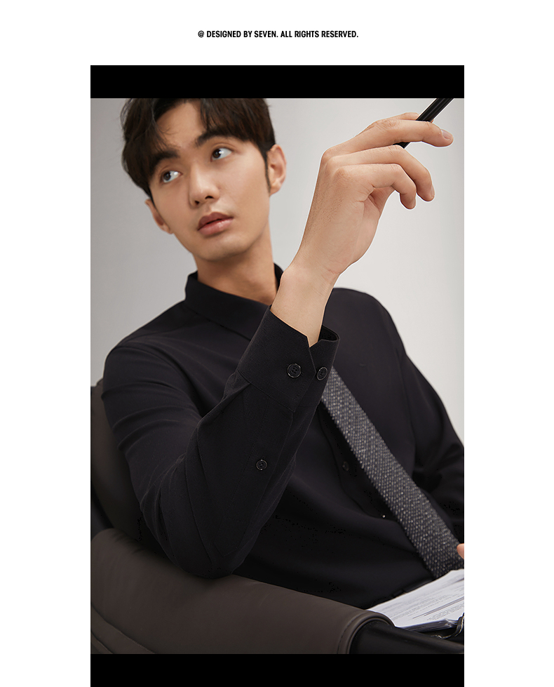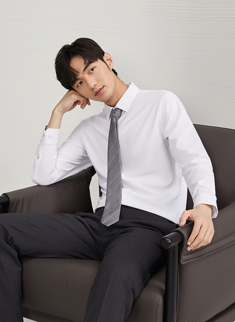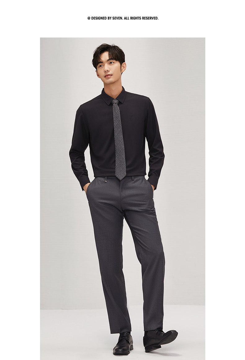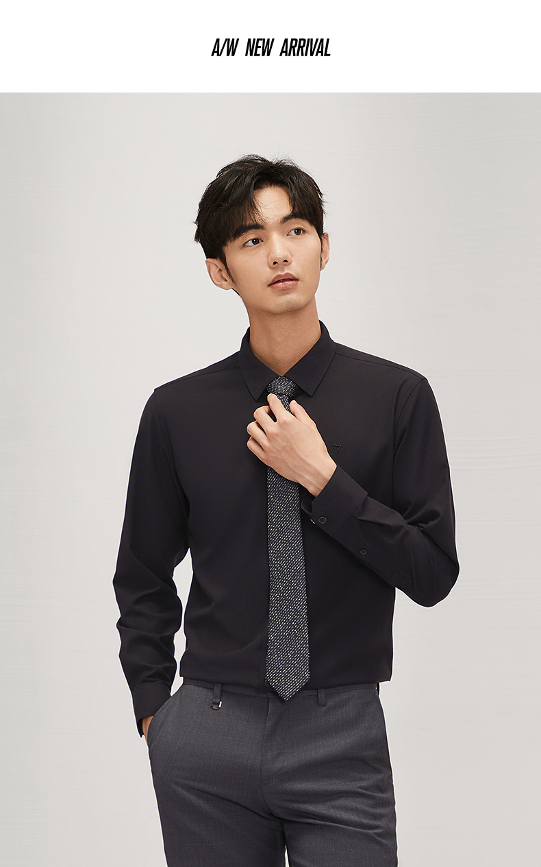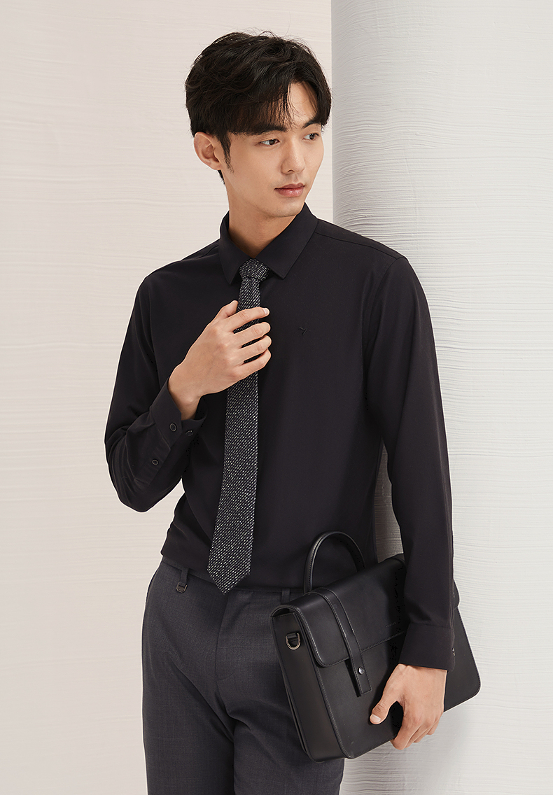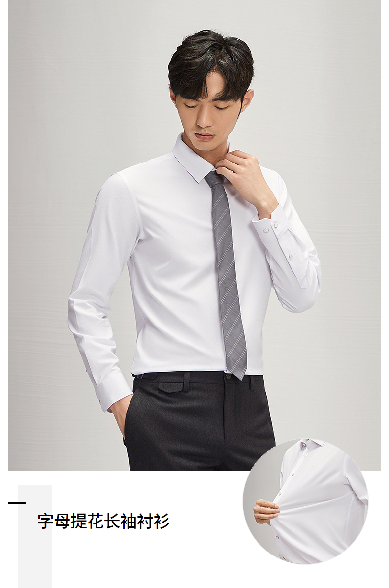 柒牌衬衫男士长袖2024秋季新款时尚潮流字母提花舒适百搭翻领衬衣 127A70330