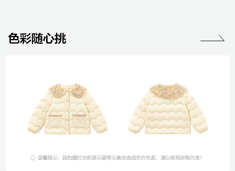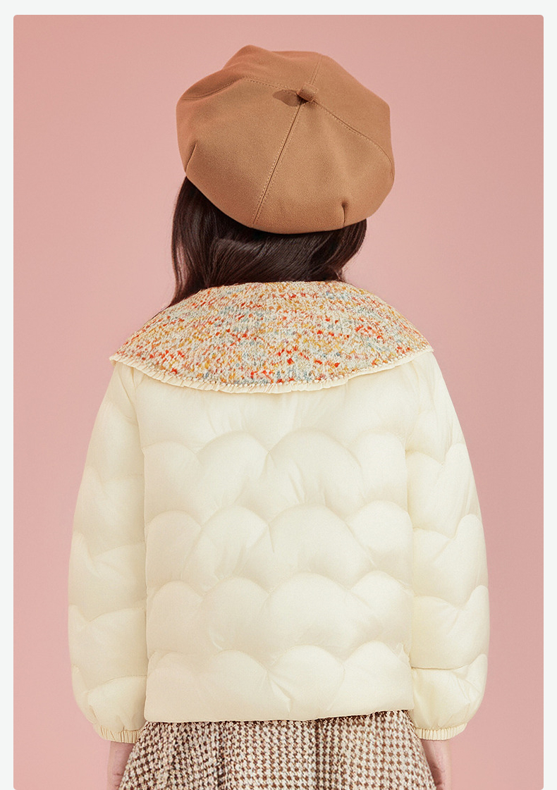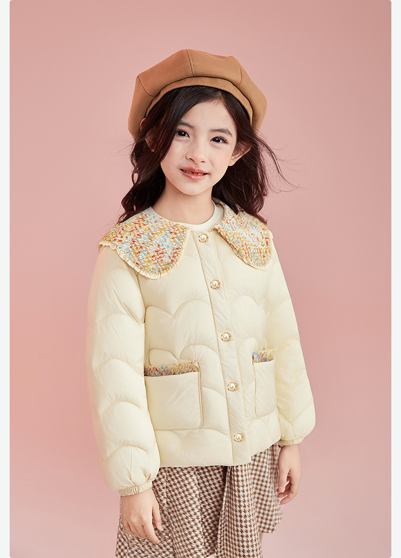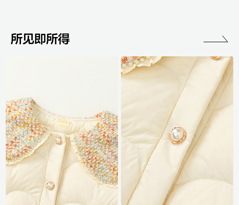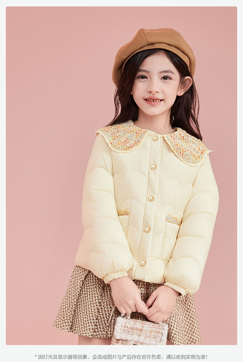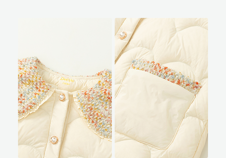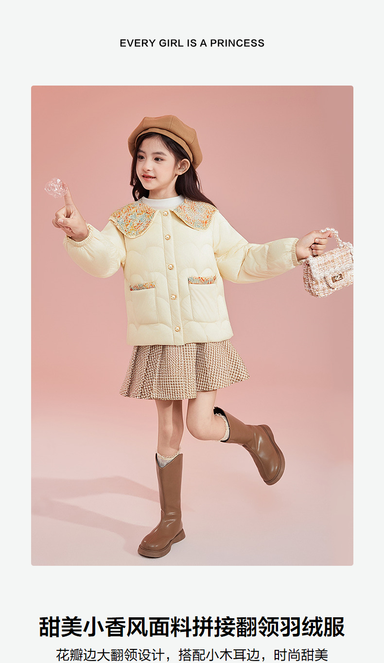 笛莎Deesha 童装女童羽绒服2025冬新款女童甜美小香风面料拼接翻领羽绒服