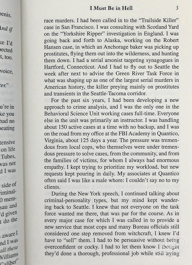 自文明开创以来,每一件骇人听闻的犯罪案件无不牵涉到这样一个冷酷的基本问题。把自己摆在这些家伙的位置,抑或揣摩他们的心理活动,从来就不是一件容易的事情,也根本不好玩。不过,这就是我和我的同事们不得已而为之的事情。我们在犯罪现场看到的每一样东西都使我们对那个作案者有所了解,通过尽可能广泛地研究各类案件并与凶手本人交谈,我们学会了破译那些线索,就像医生评估不同的症状以诊断病情。在联邦调查局的调查支援科,我们所从事的这些侧写和犯罪现场分析,就是要试图解答这一问题。
