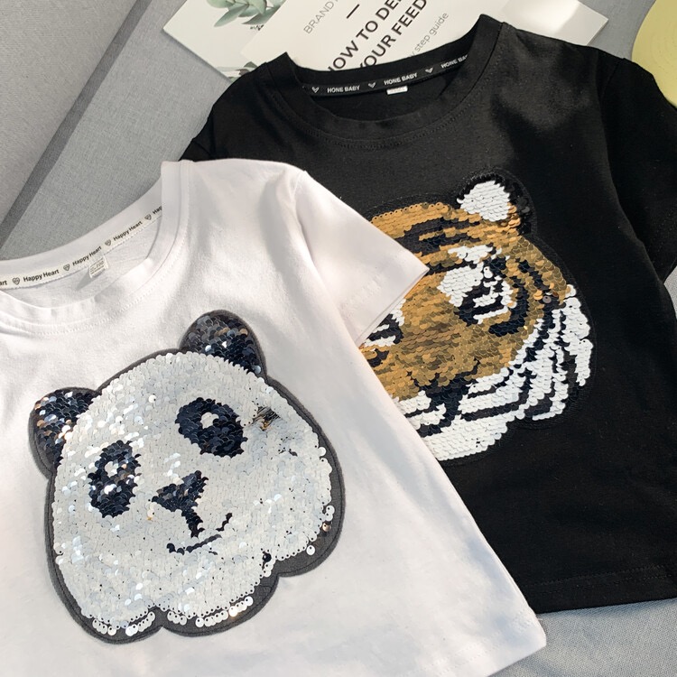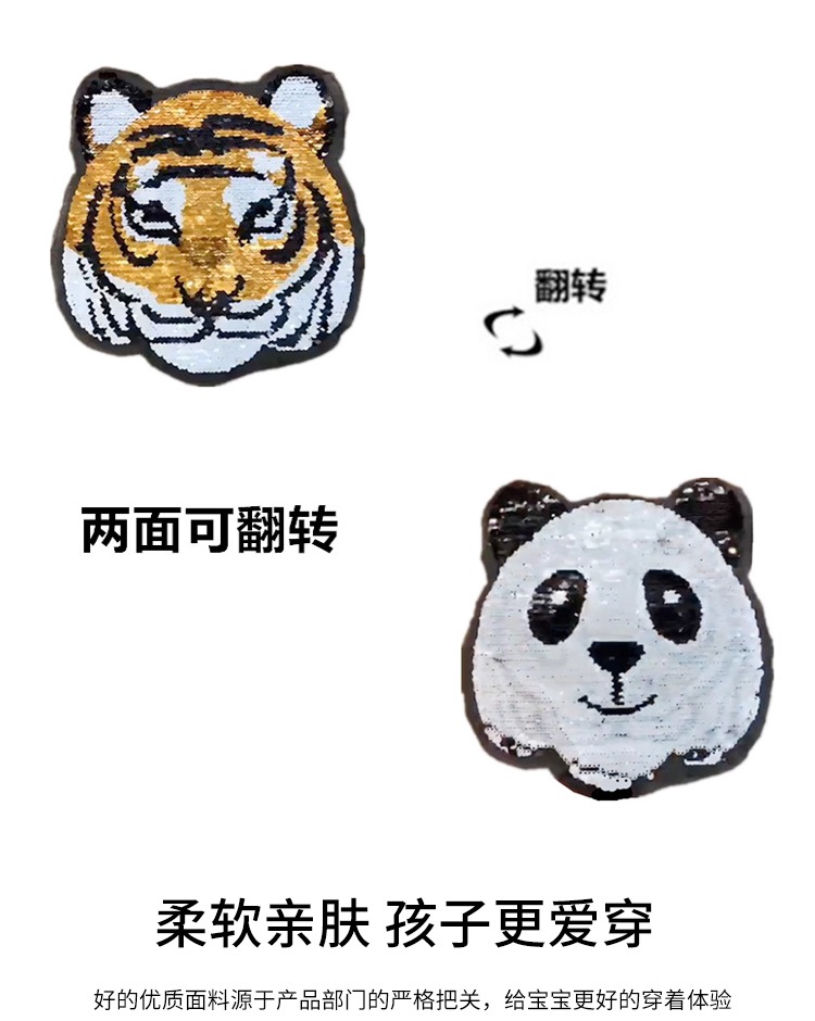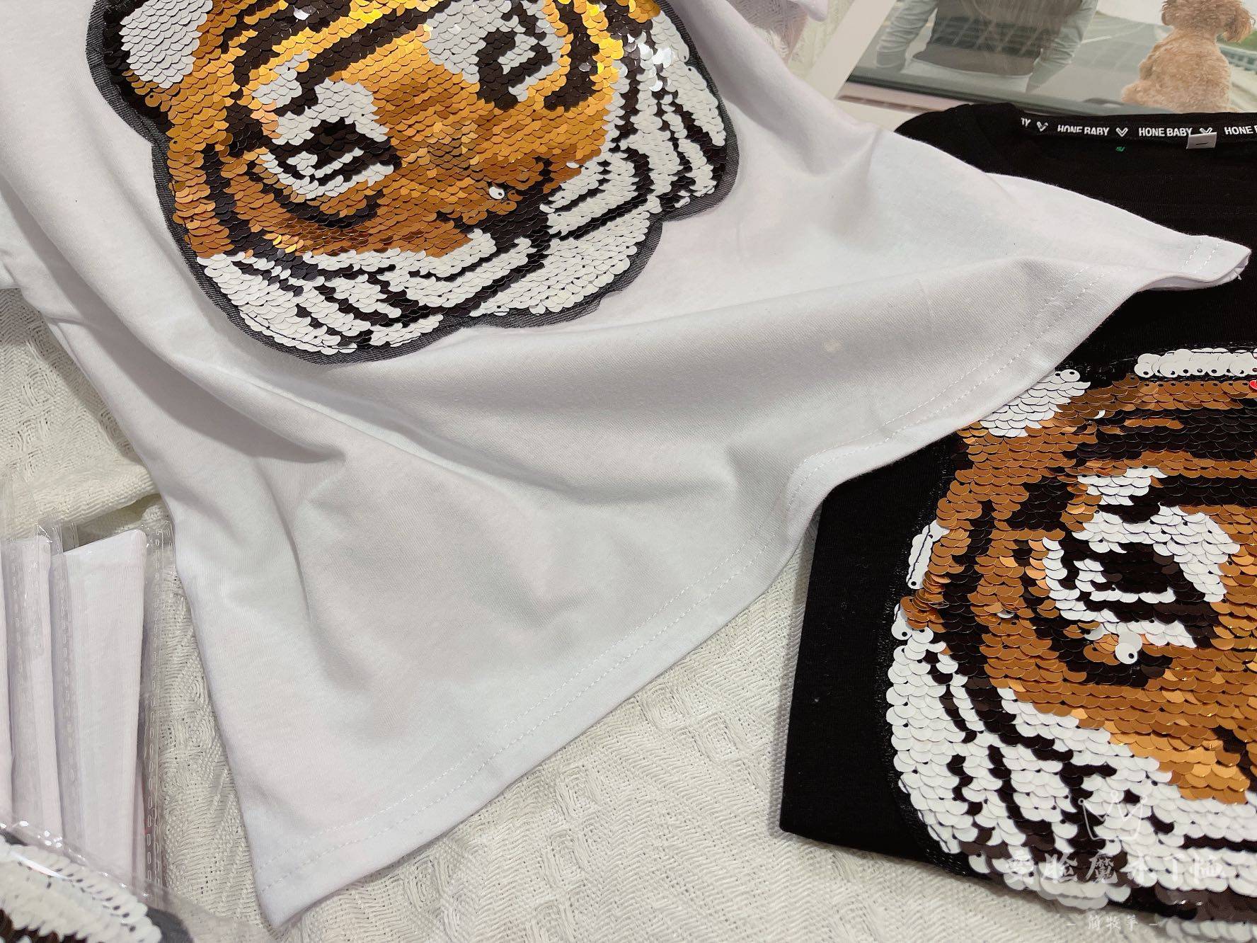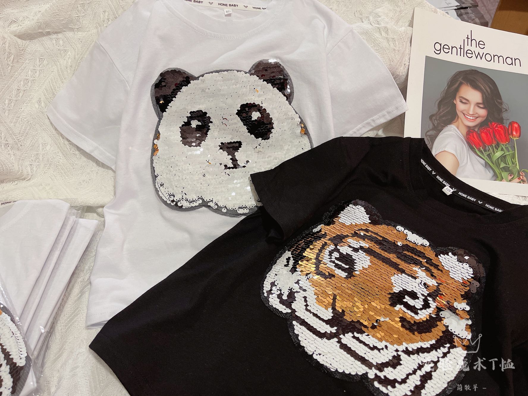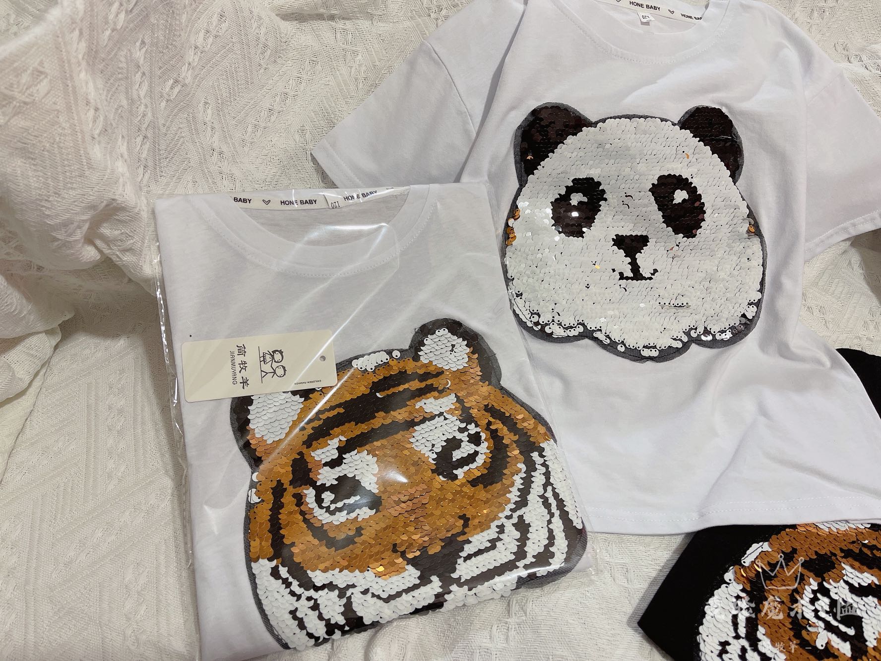 今年最火的魔术T,老虎+熊猫,买1件等于买了2件!高支高密高克重纯棉,领条包边无可挑剔,给宝宝肌肤最好的呵护~男宝女宝都可以穿!面料柔软又亲肤,胸前bulingbuling的大贴片设计也是非常精致的,而且亮片中间有一层网纱,衣服内里完全不用担心会扎到宝贝的皮肤哟~