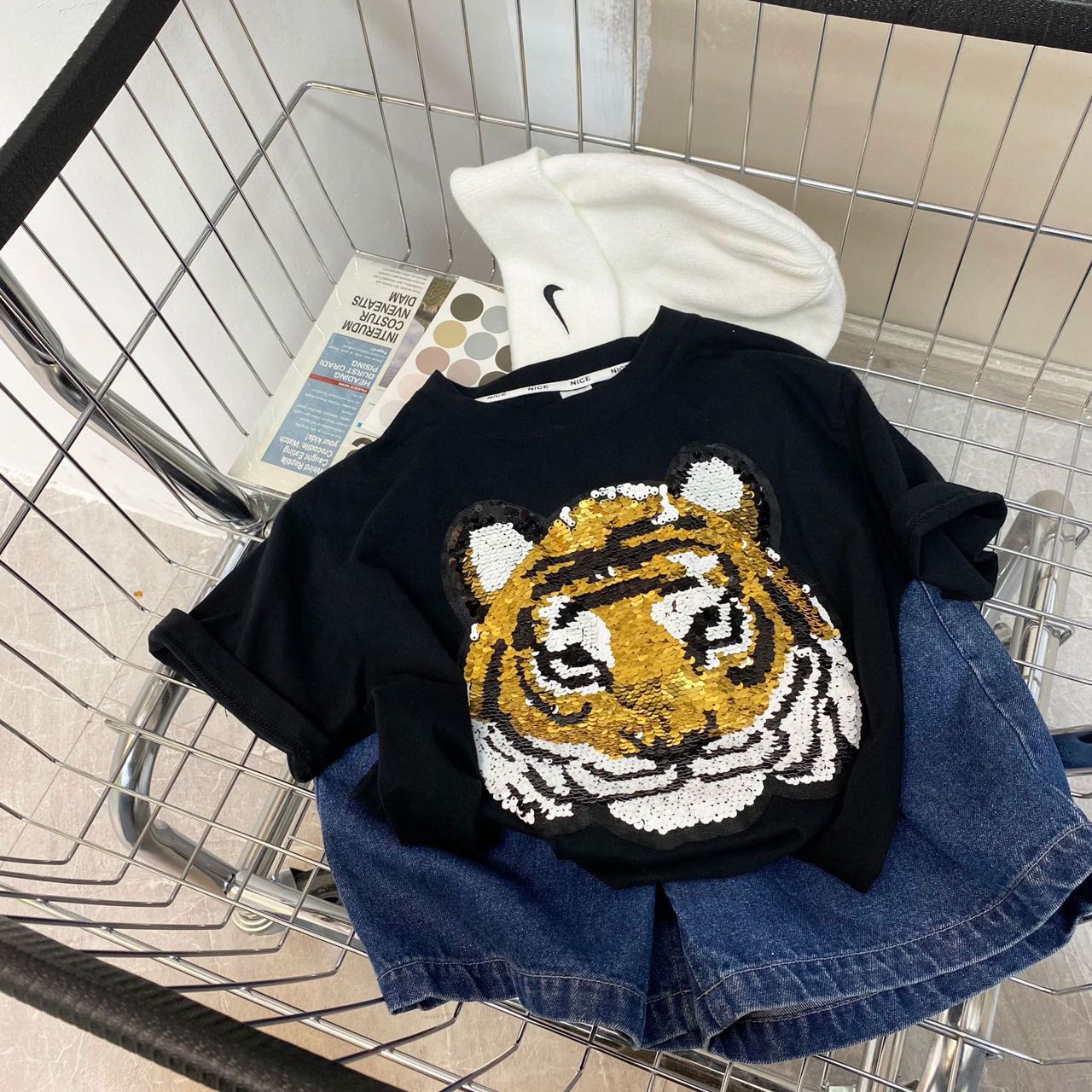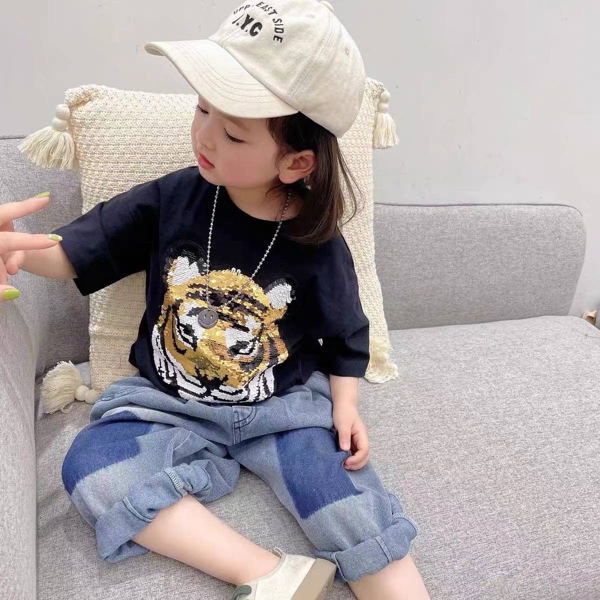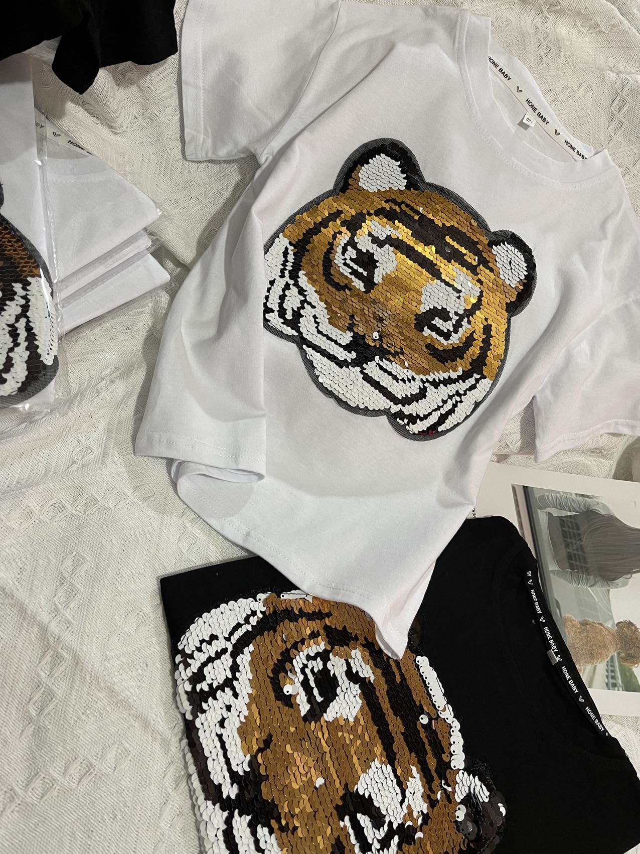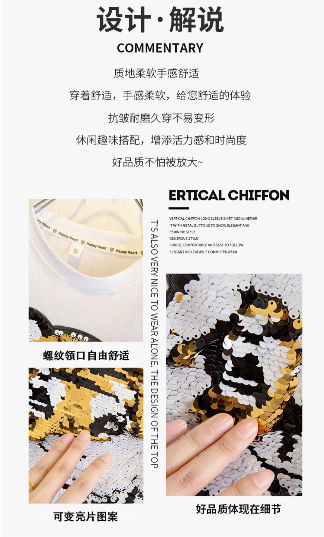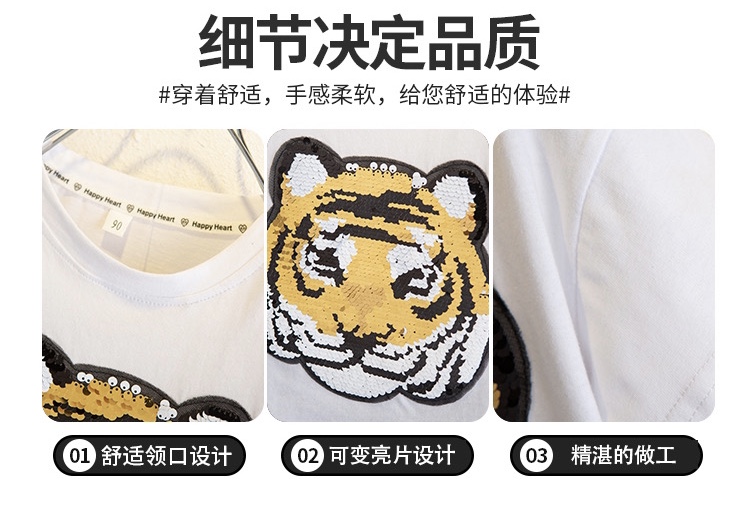今年最火的魔术T,老虎+熊猫,买1件等于买了2件!高支高密高克重纯棉,领条包边无可挑剔,给宝宝肌肤最好的呵护~男宝女宝都可以穿!面料柔软又亲肤,胸前bulingbuling的大贴片设计也是非常精致的,而且亮片中间有一层网纱,衣服内里完全不用担心会扎到宝贝的皮肤哟~