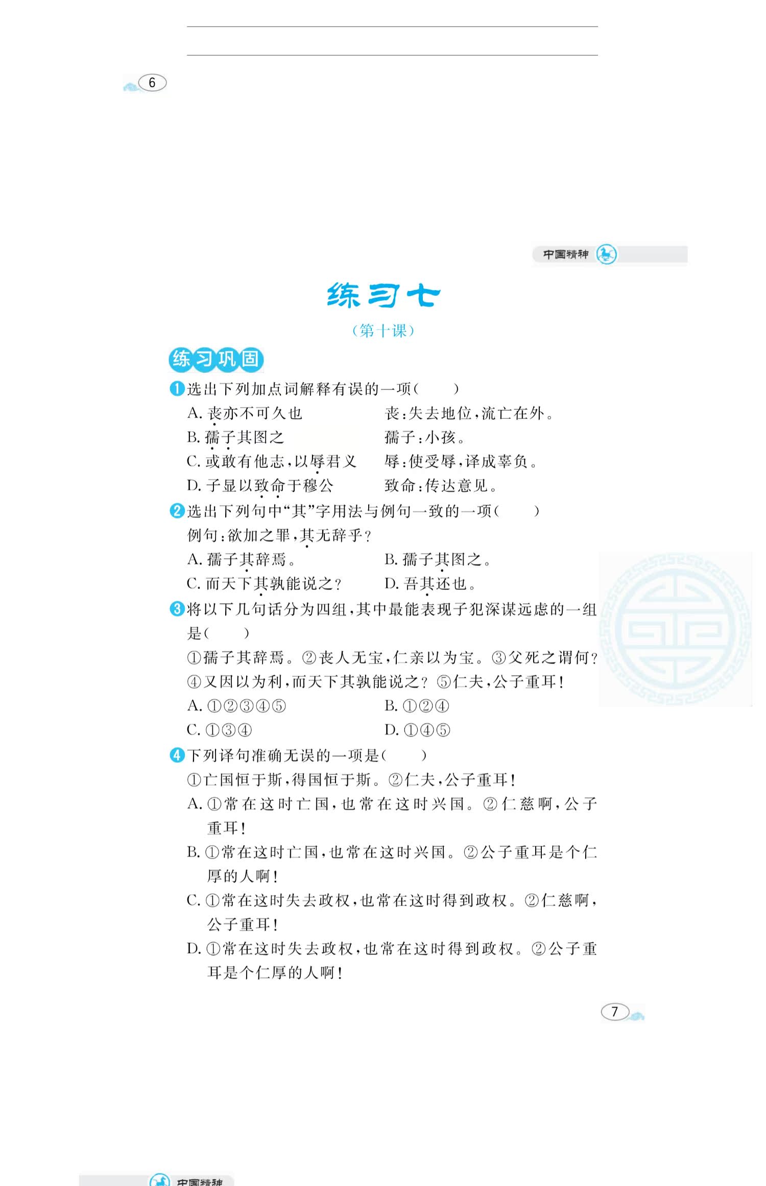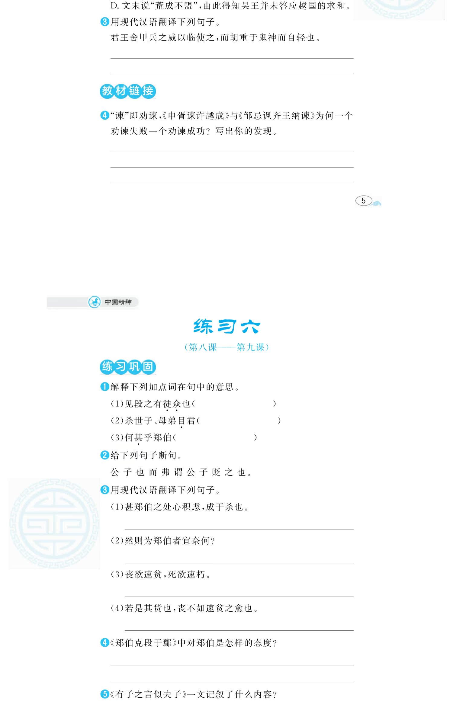 中国精神 九年级下册 9年级下册fb中华优秀传统文化教育读本