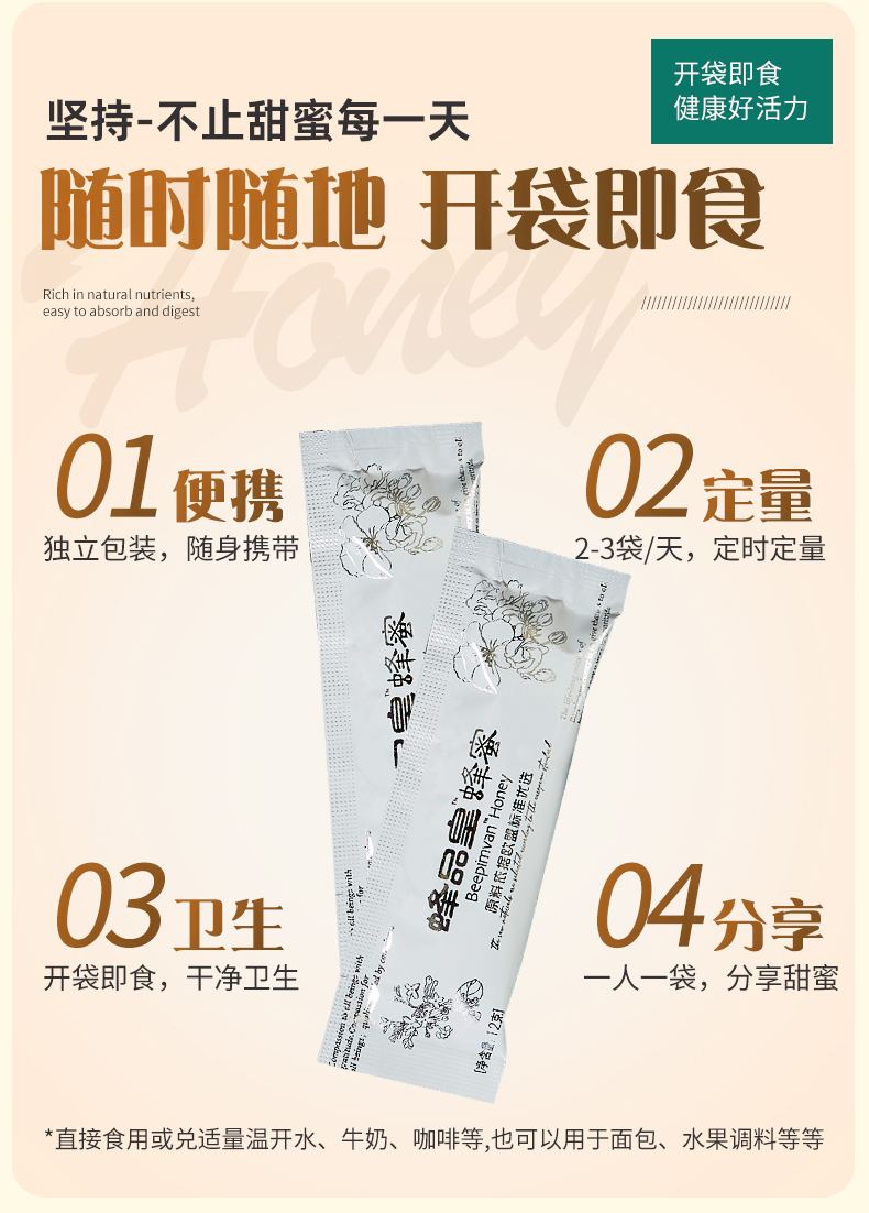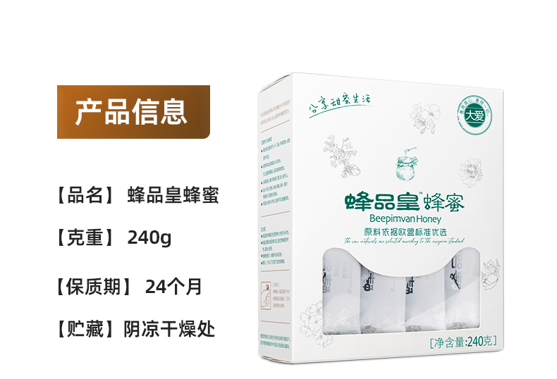 【蜂品皇牌】蜂蜜12克/袋 分食即食蜂蜜更方便 240克/盒