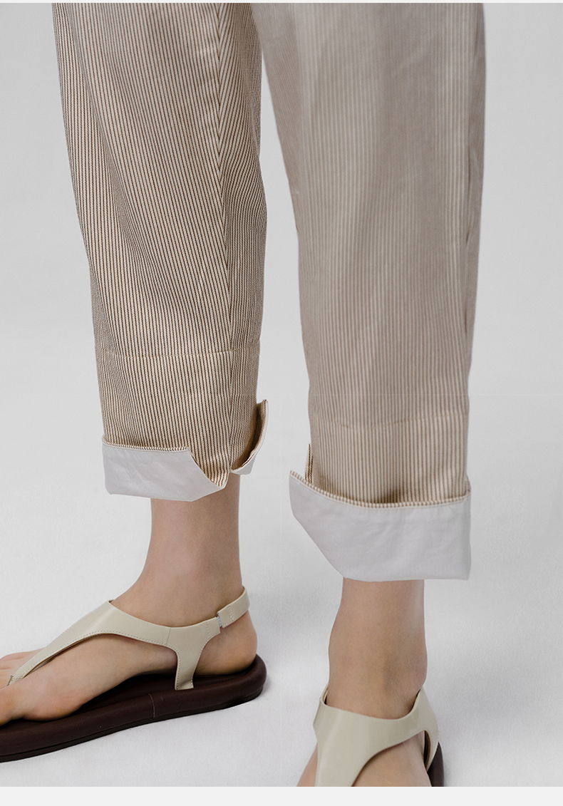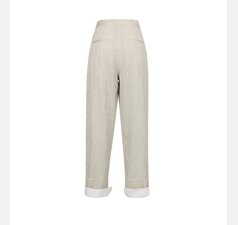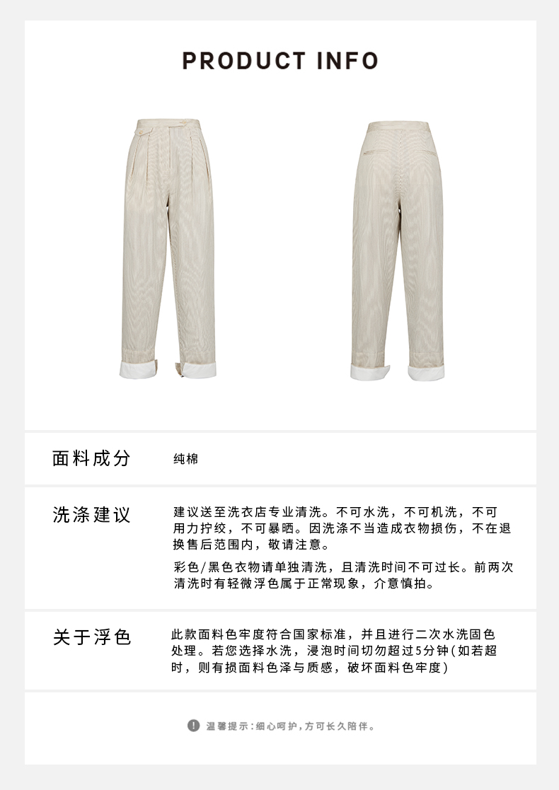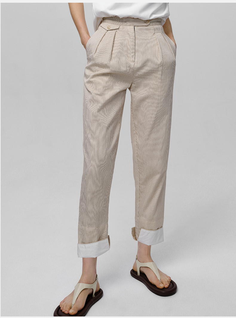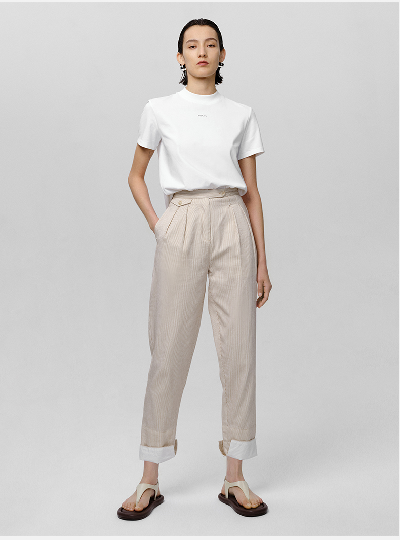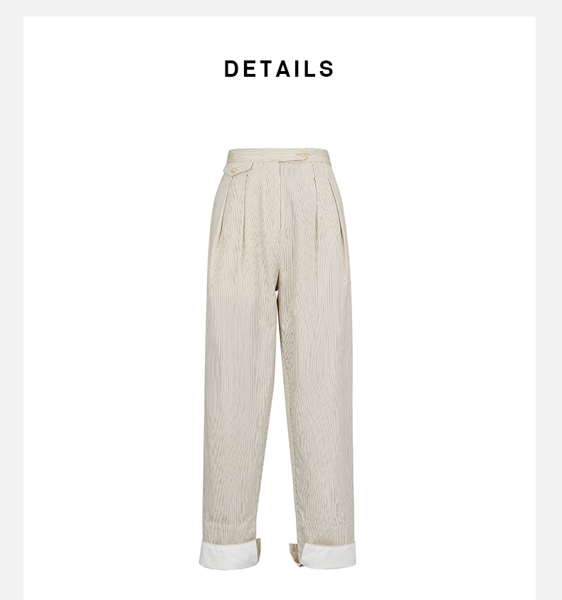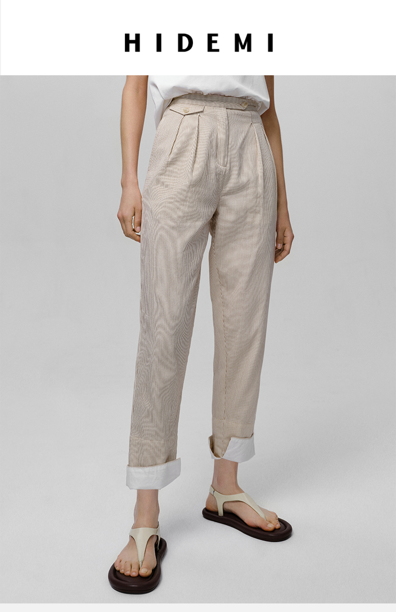 HIDEMI 原色水洗色织极简高腰卷边锥形裤