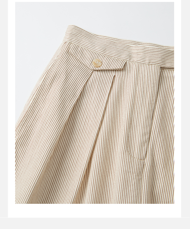 HIDEMI 夏日清透深海蓝色织竖条纹套装 口袋衬衫/喇叭型宽松长裤