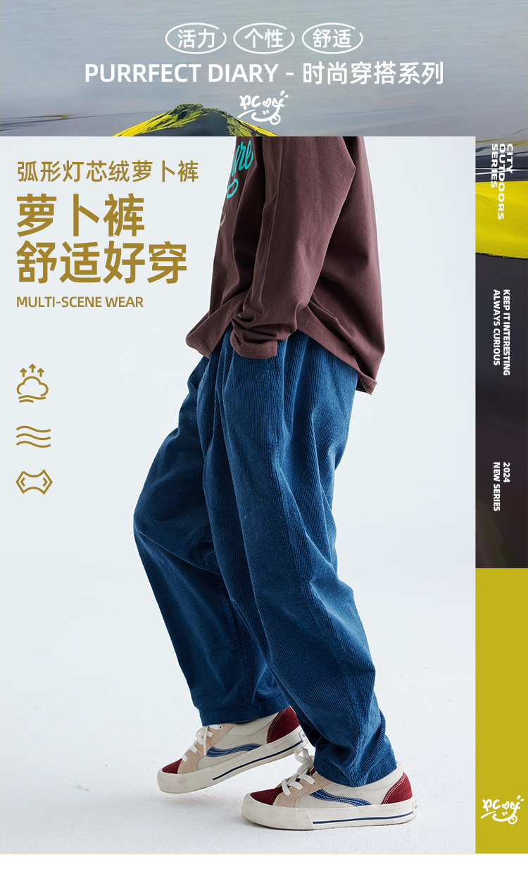 【不发硬的机能灯芯绒】儿童弧形灯芯绒萝卜裤 PDK2424