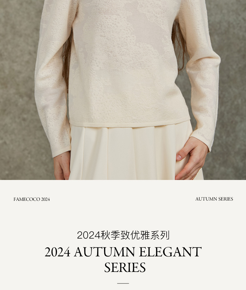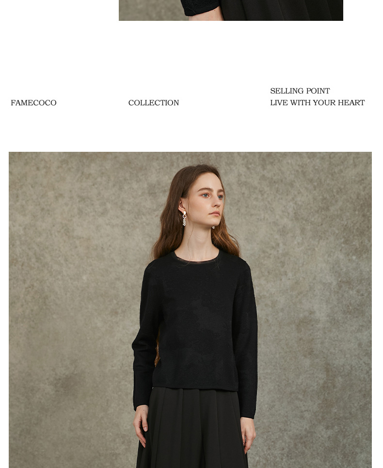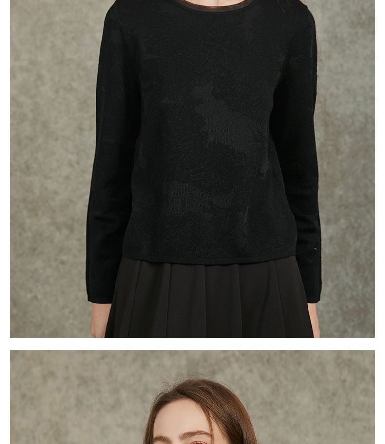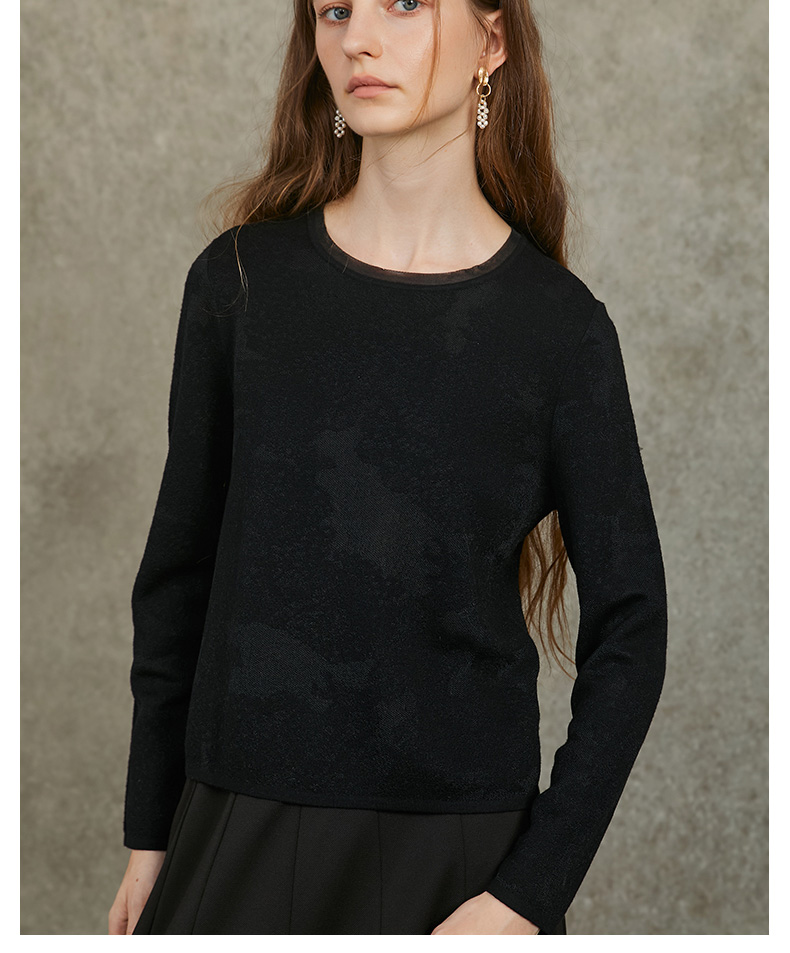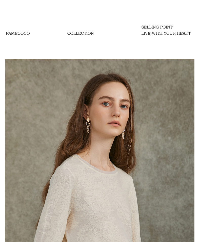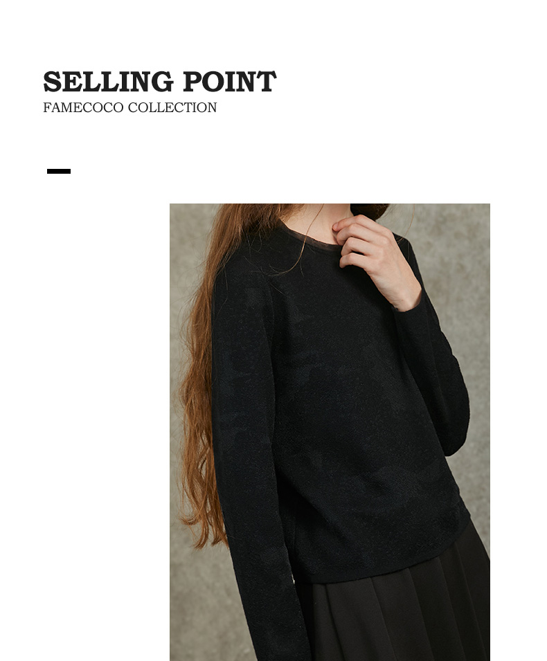 Famecoco范可儿百搭圆领针织打底衫优雅欧根纱拼接FAC6DB006