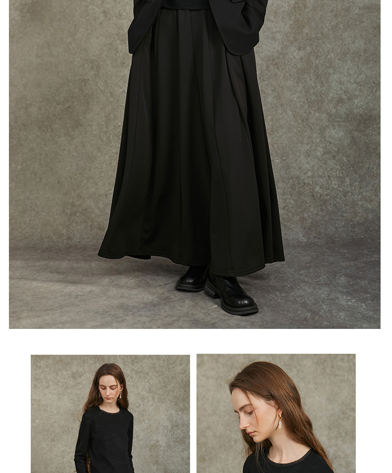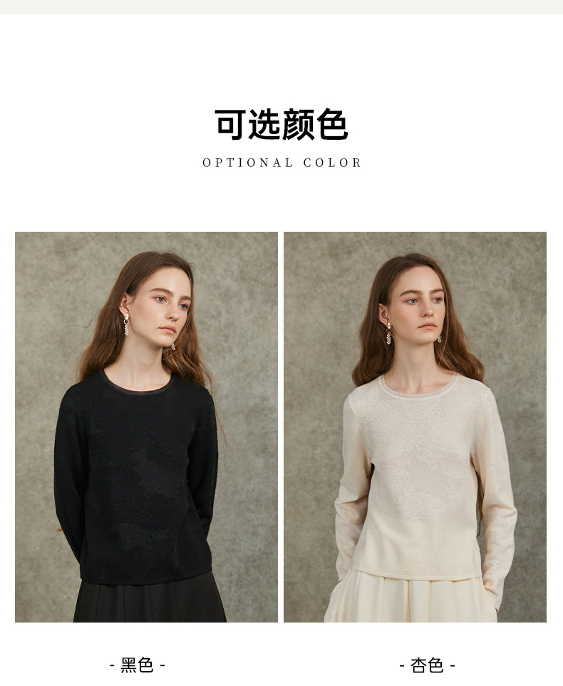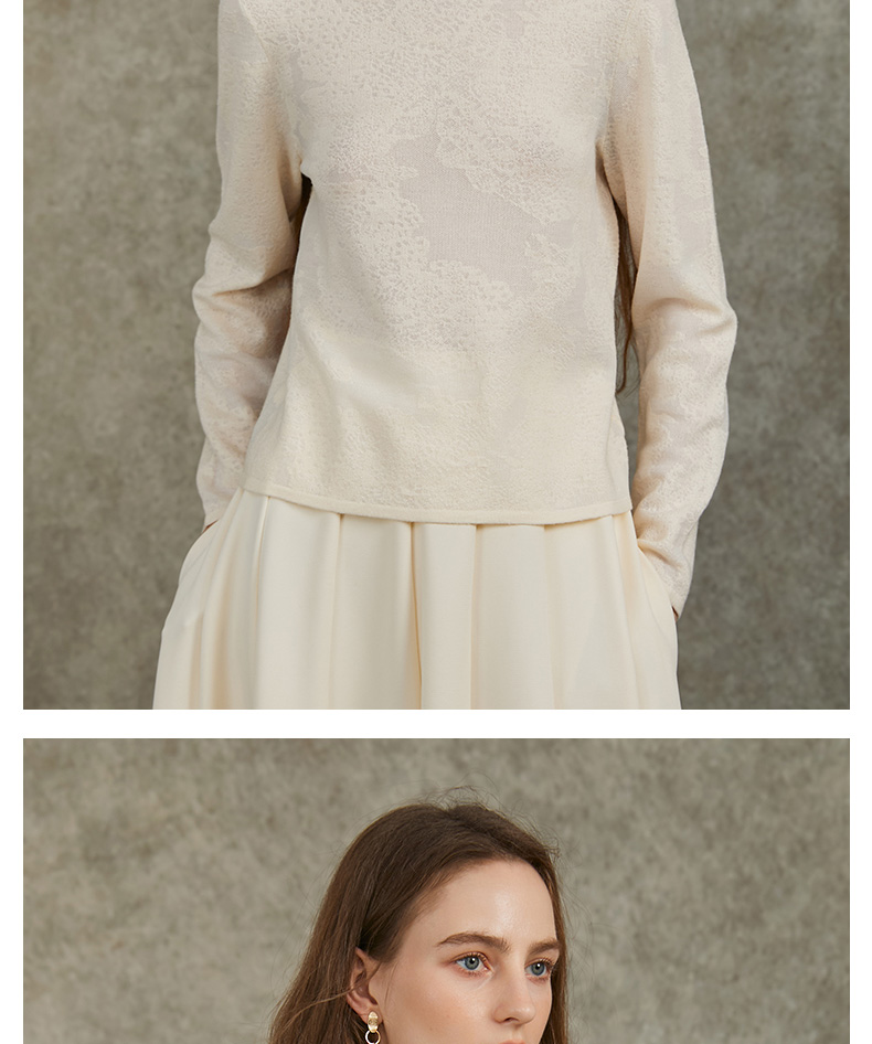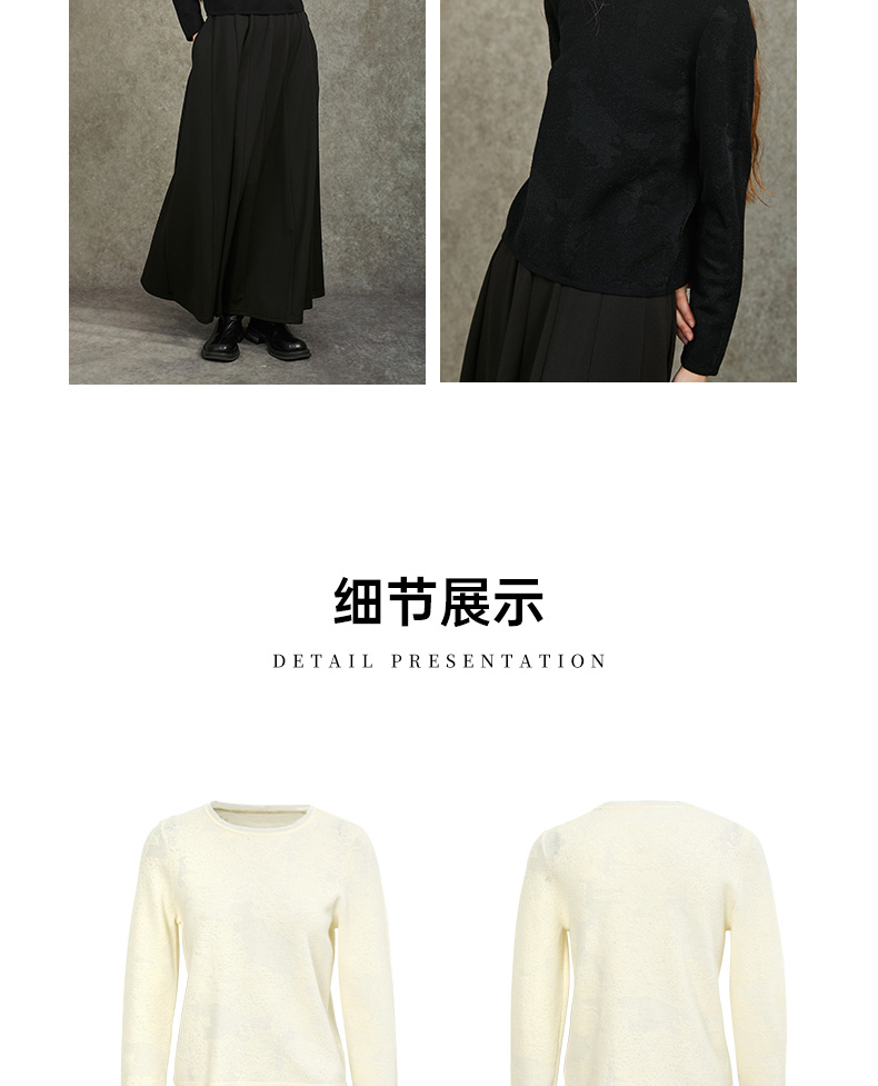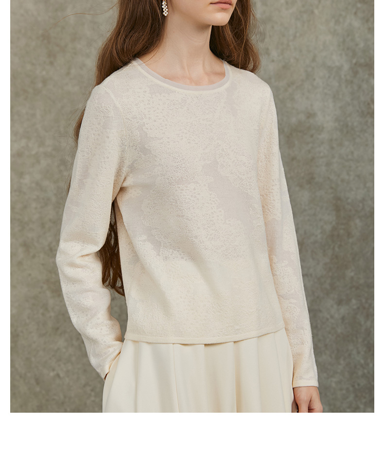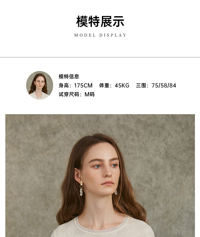 Famecoco范可儿百搭圆领针织打底衫优雅欧根纱拼接FAC6DB006