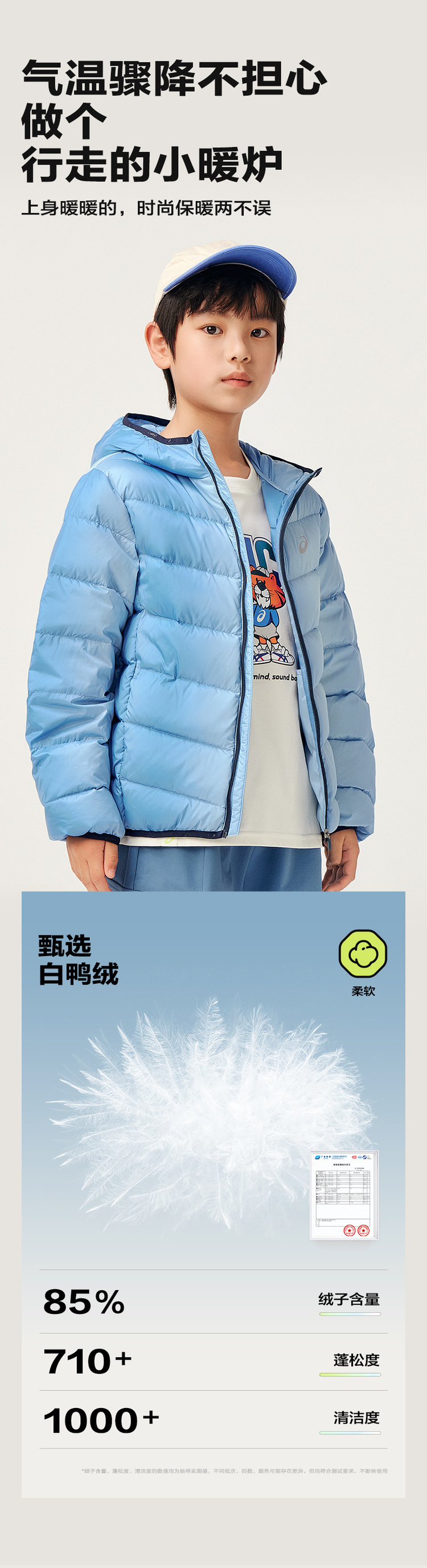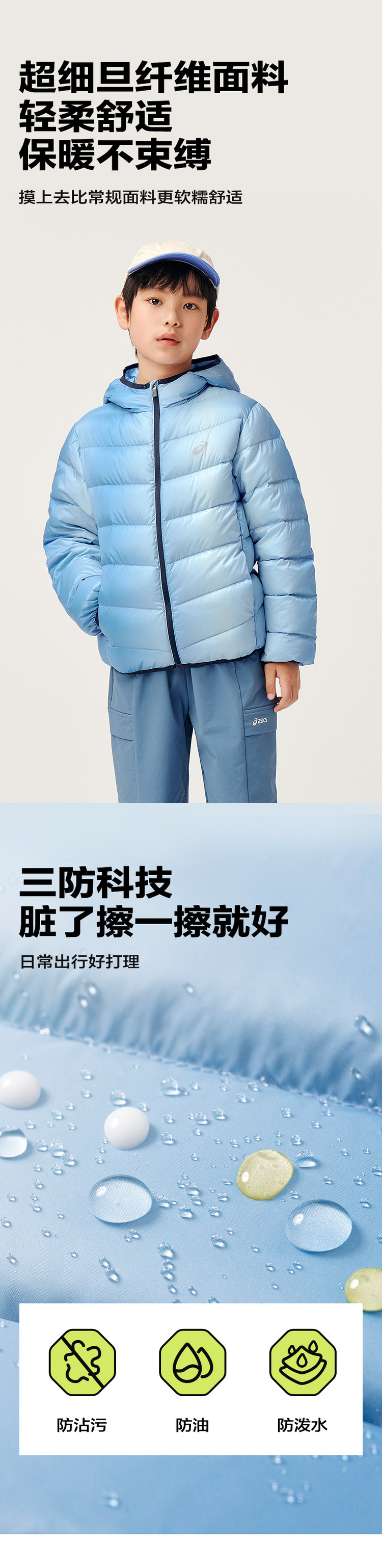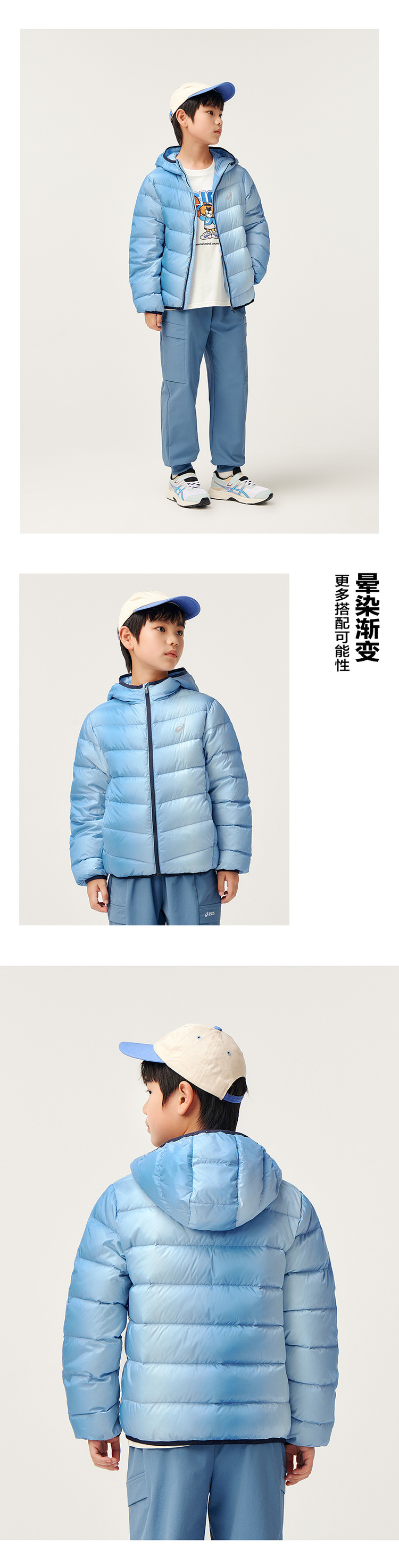 ASICS/亚瑟士童装中大童中性款百搭羽绒服2024时尚基础轻薄羽绒服