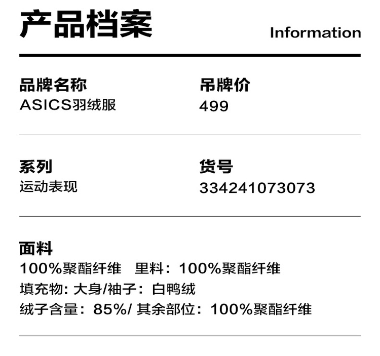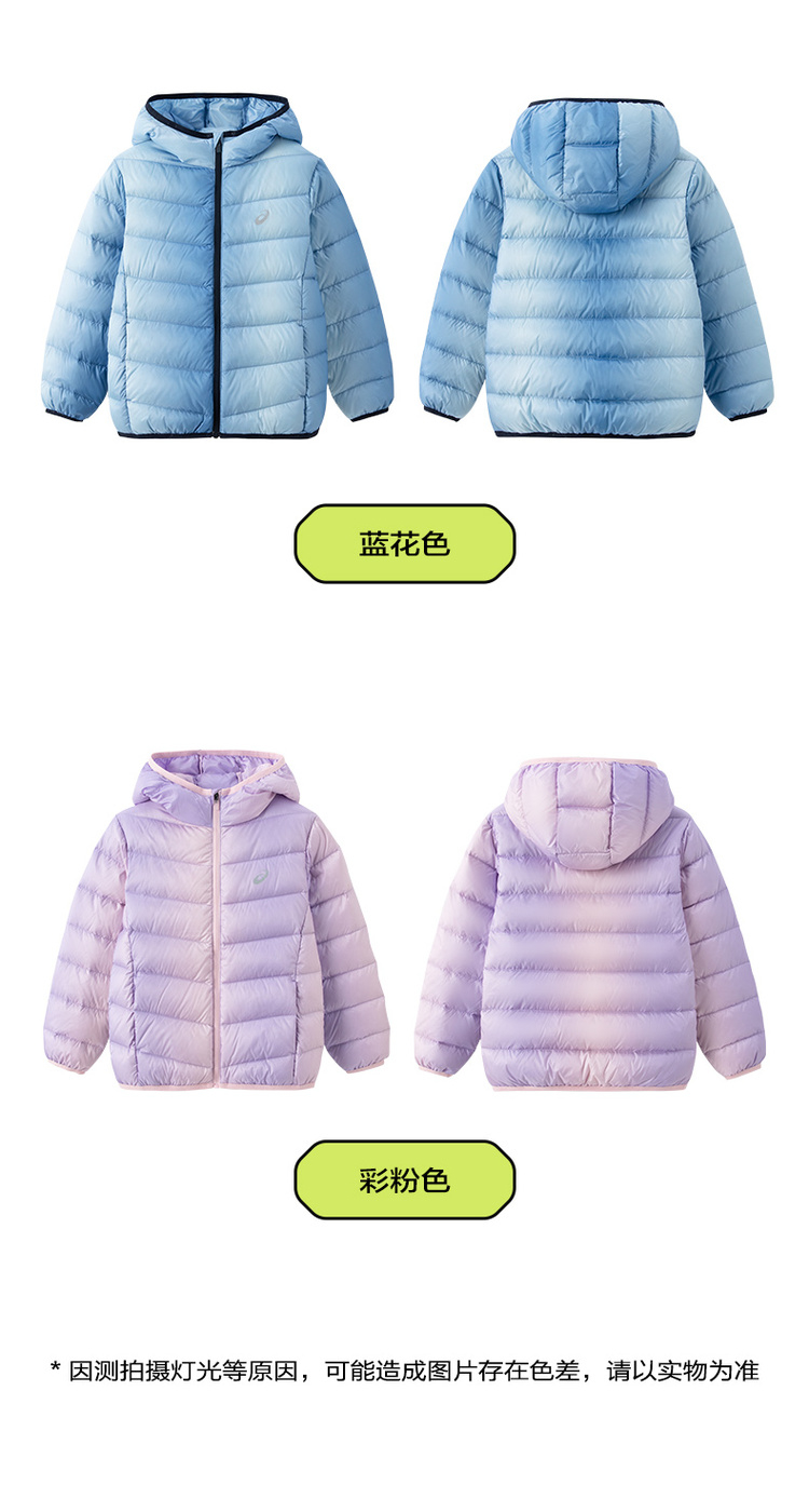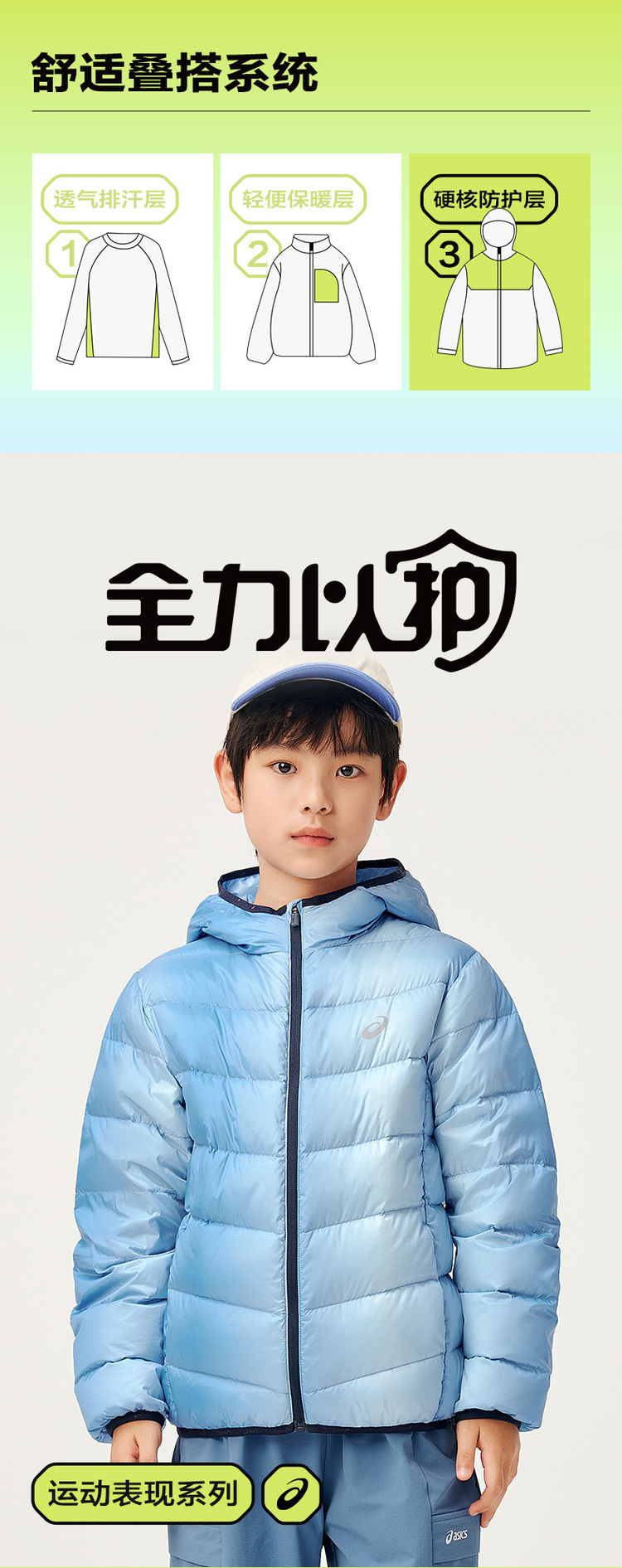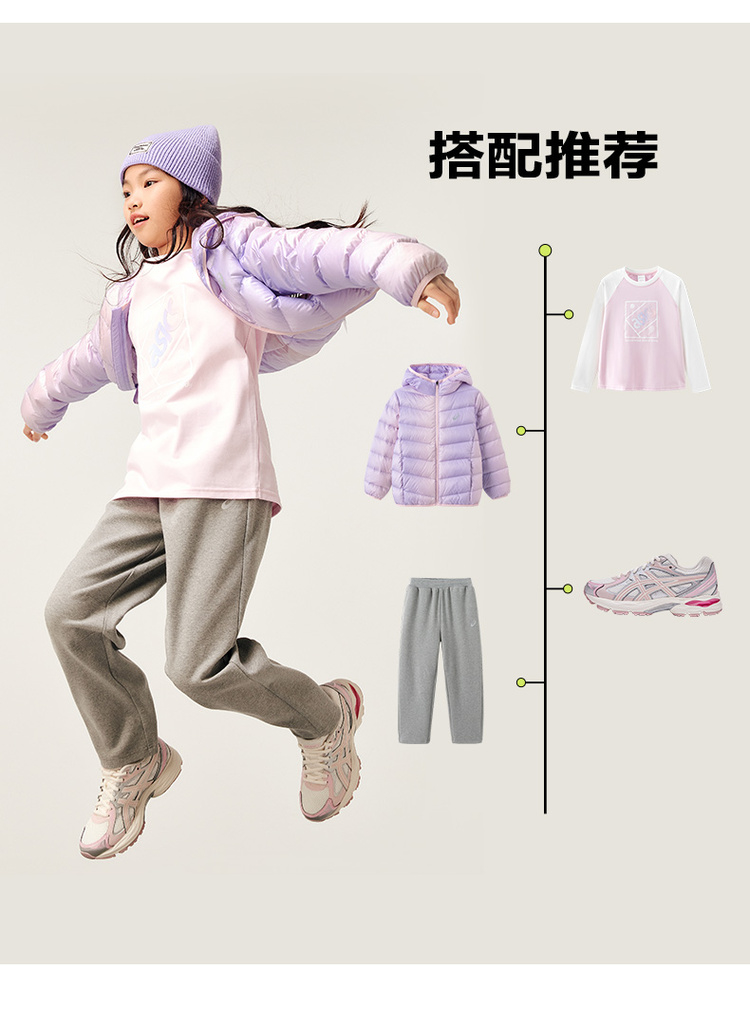 ASICS/亚瑟士童装中大童中性款百搭羽绒服2024时尚基础轻薄羽绒服