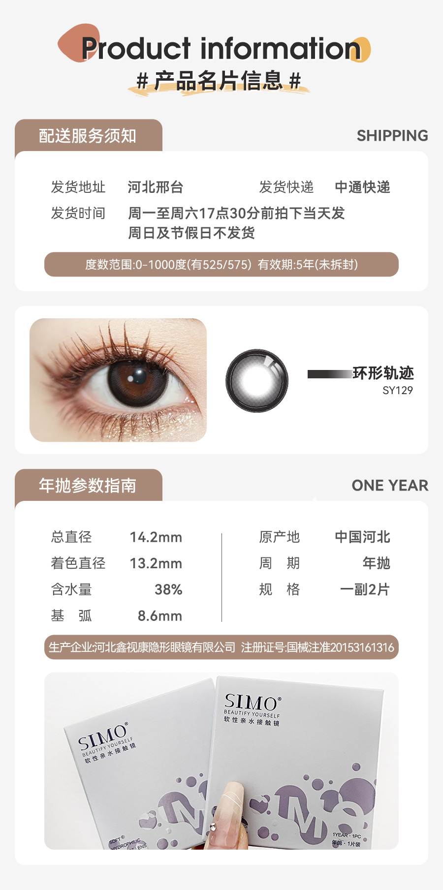 「2副均¥69」SIMO环形轨迹年抛 | 婴儿黑瞳着色13.2mm 1副2片