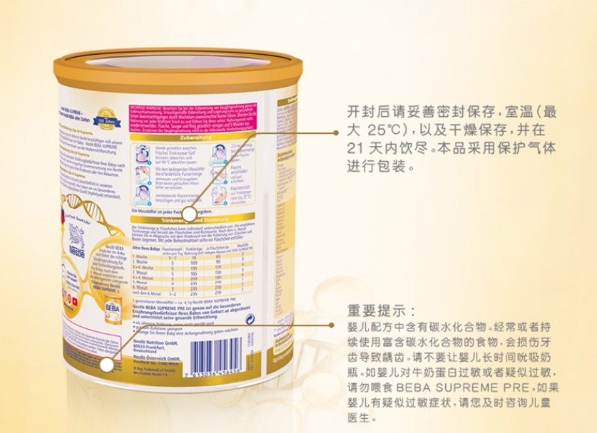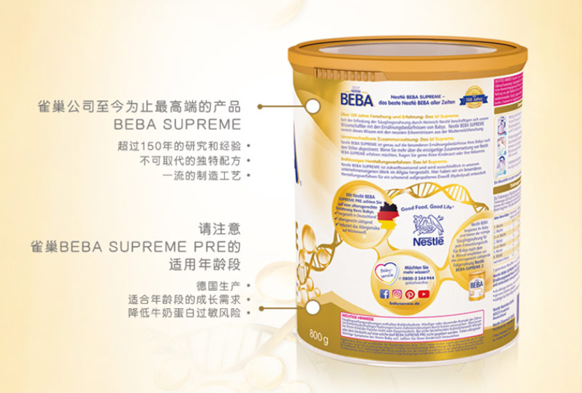 HNMG 德国雀巢BEBA至尊版SUPREME两种HMO超高端婴幼儿奶粉PRE段 800g