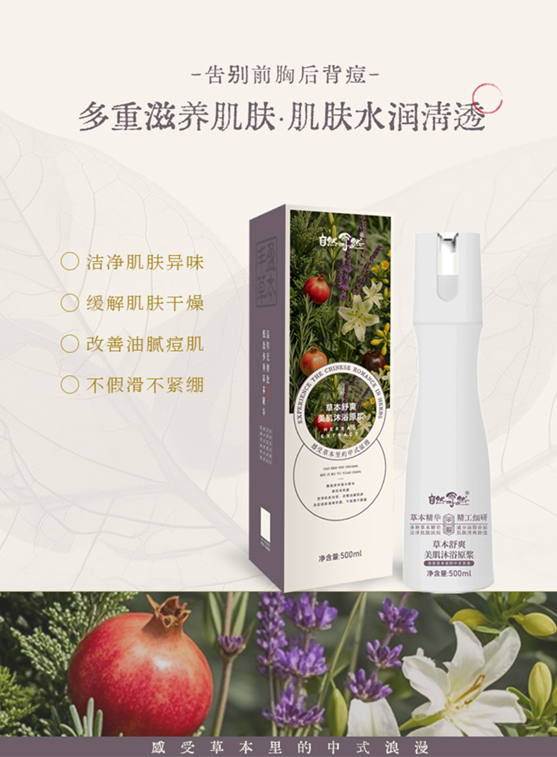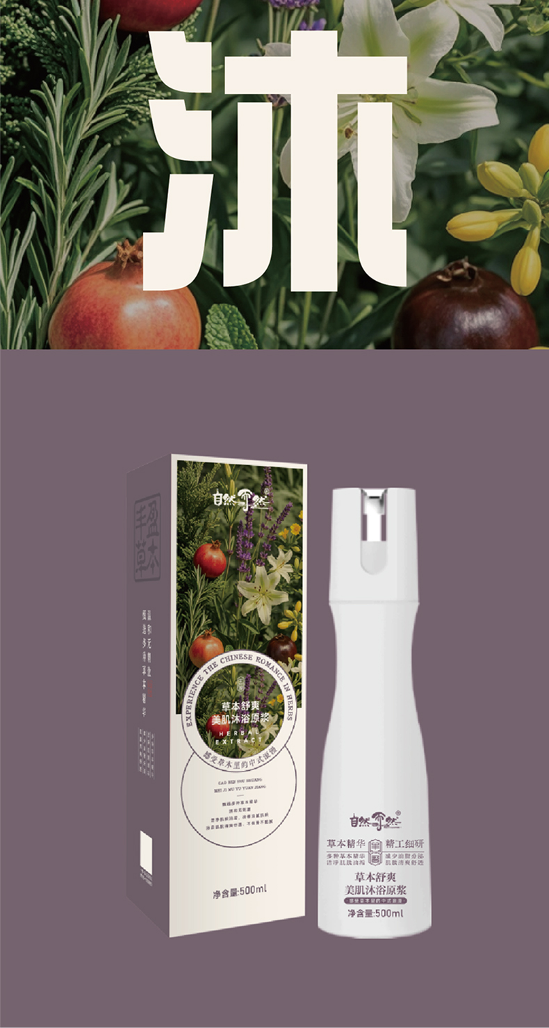 【草本舒爽美肌沐浴露】 滋润亲肤 原浆檀香 澄净肌理 清香持久 500mllc