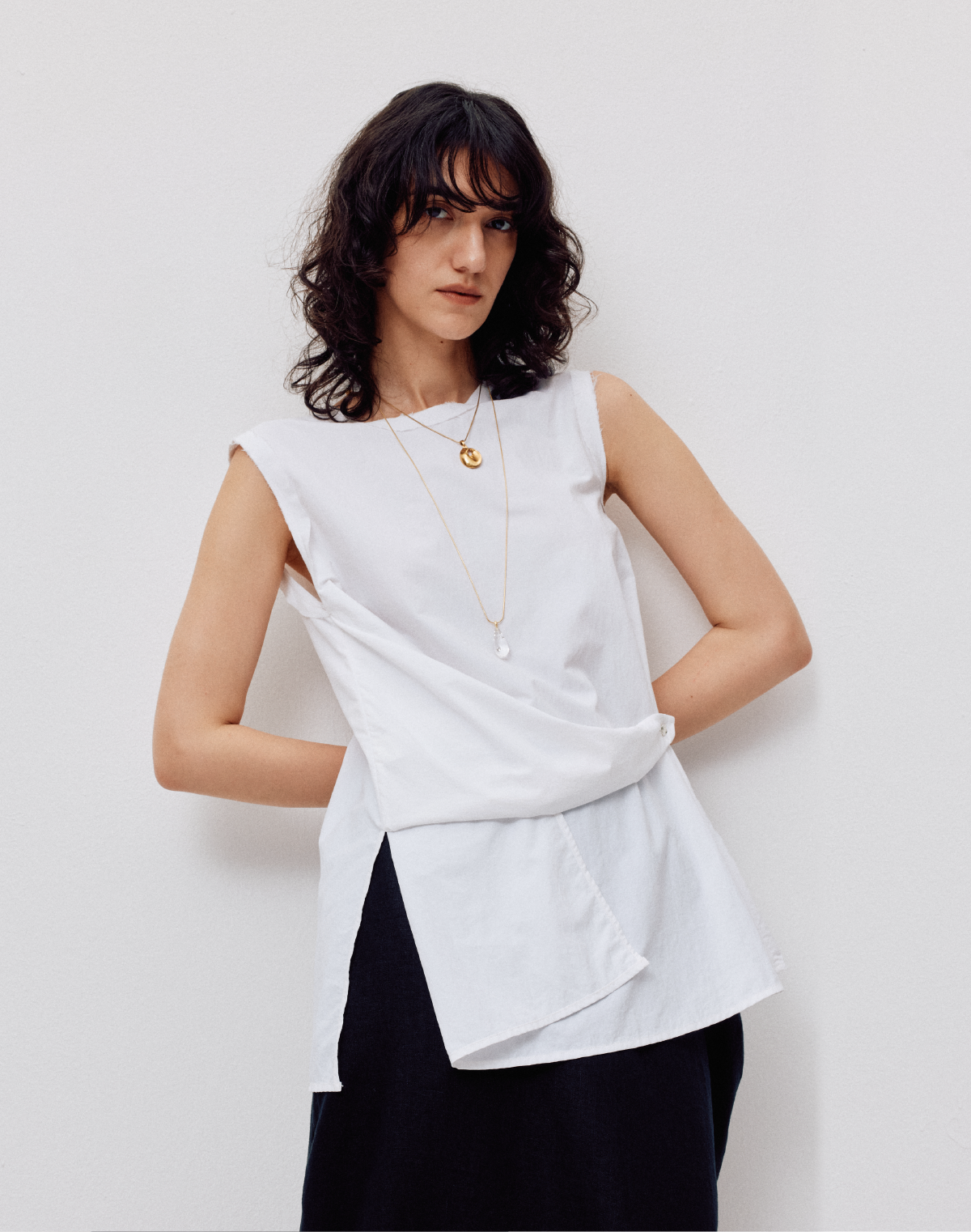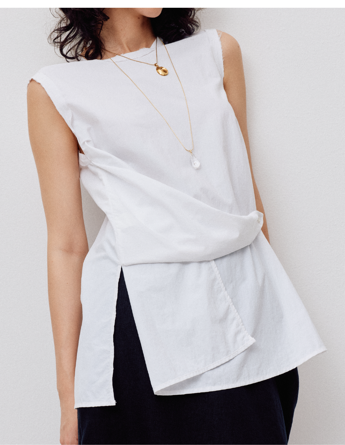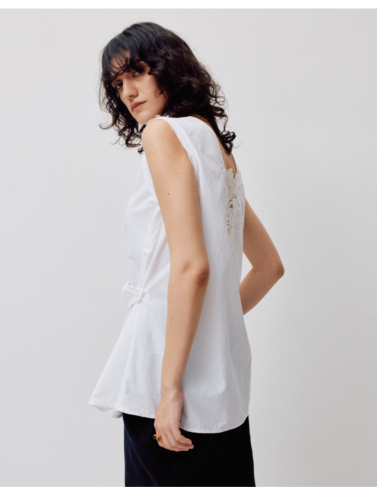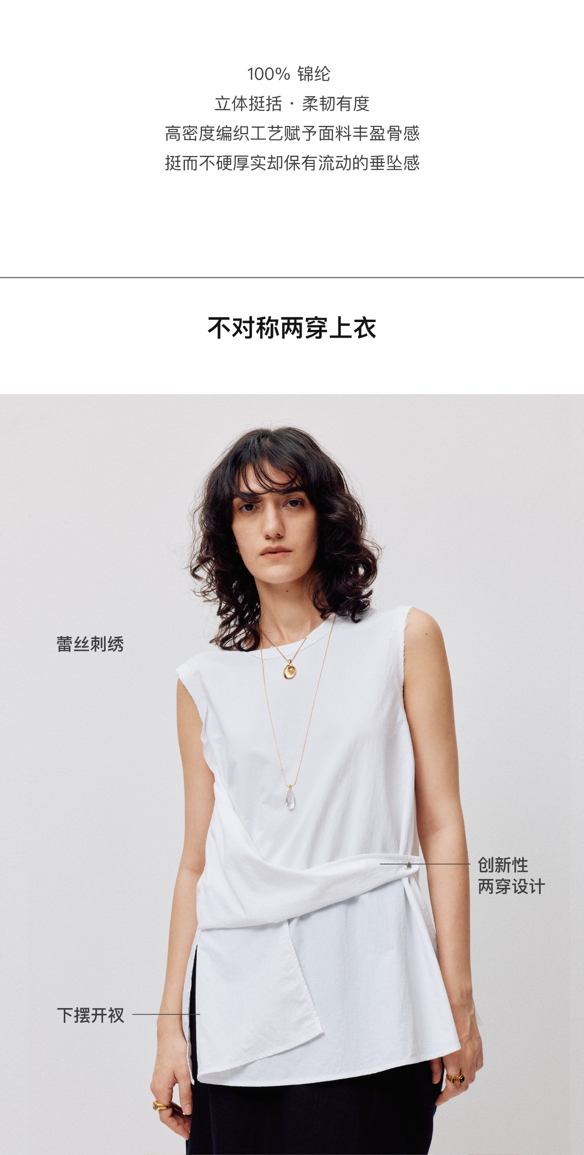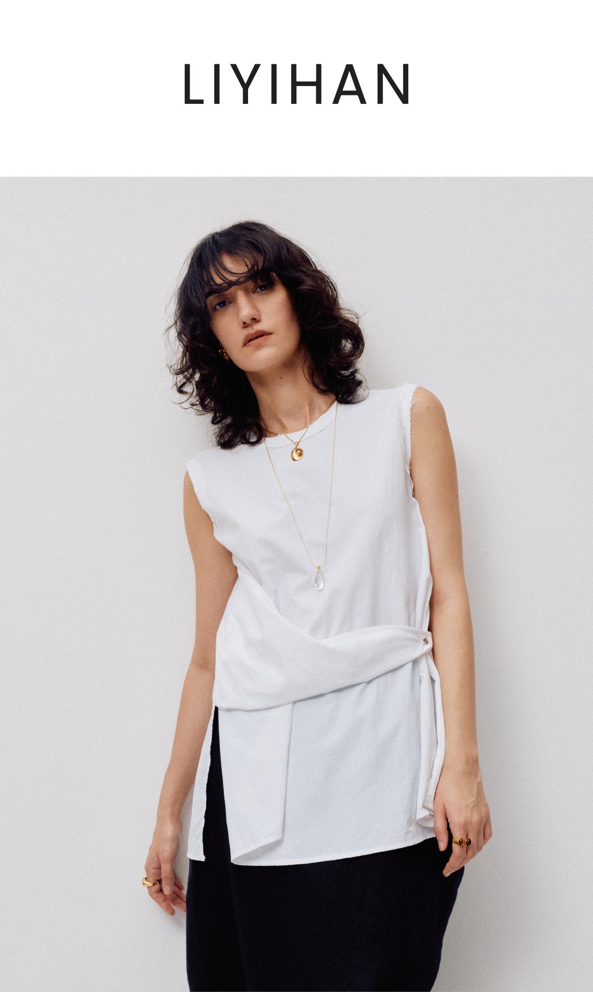 LIYIHAN设计感百搭时尚休闲背心纯色背部蕾丝两穿上衣