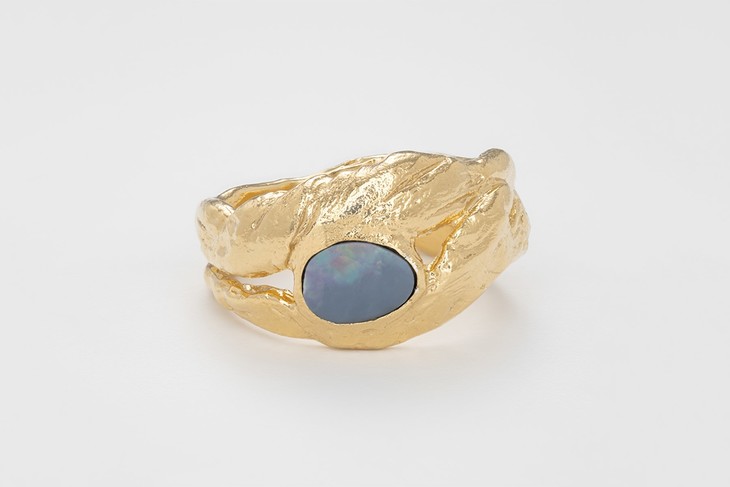 材质:Hand crafted 925 silver ring with 18k gold plating and an opal.