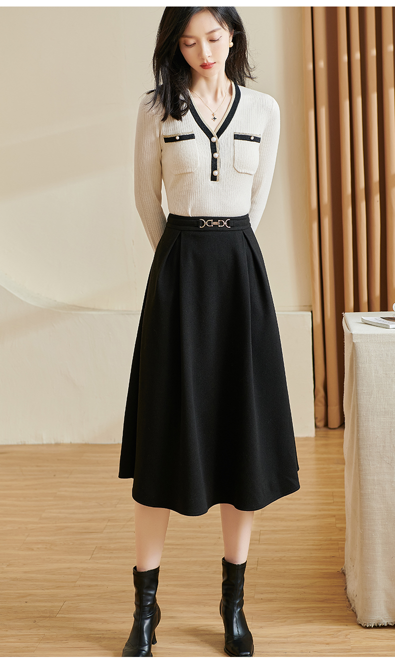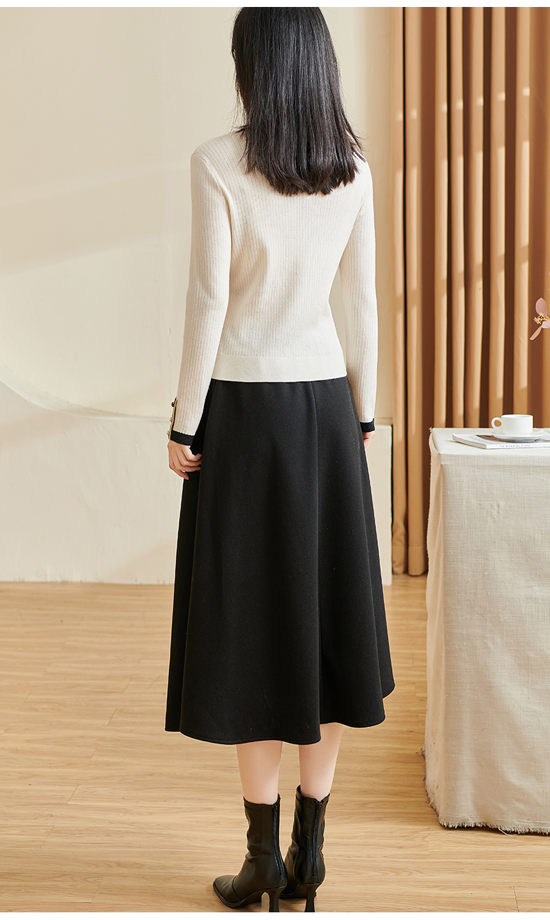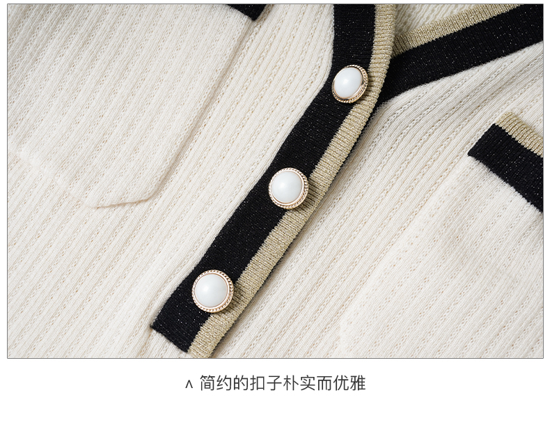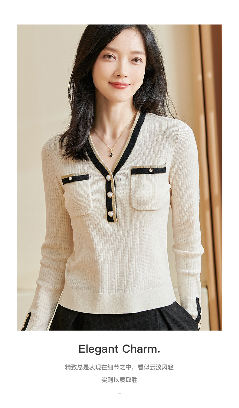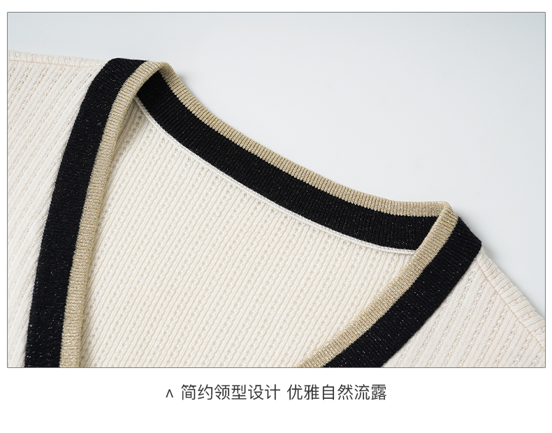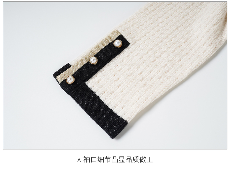 米思阳2026春季新款知性气质拼色针织衫v领花边长袖微弹上衣2651