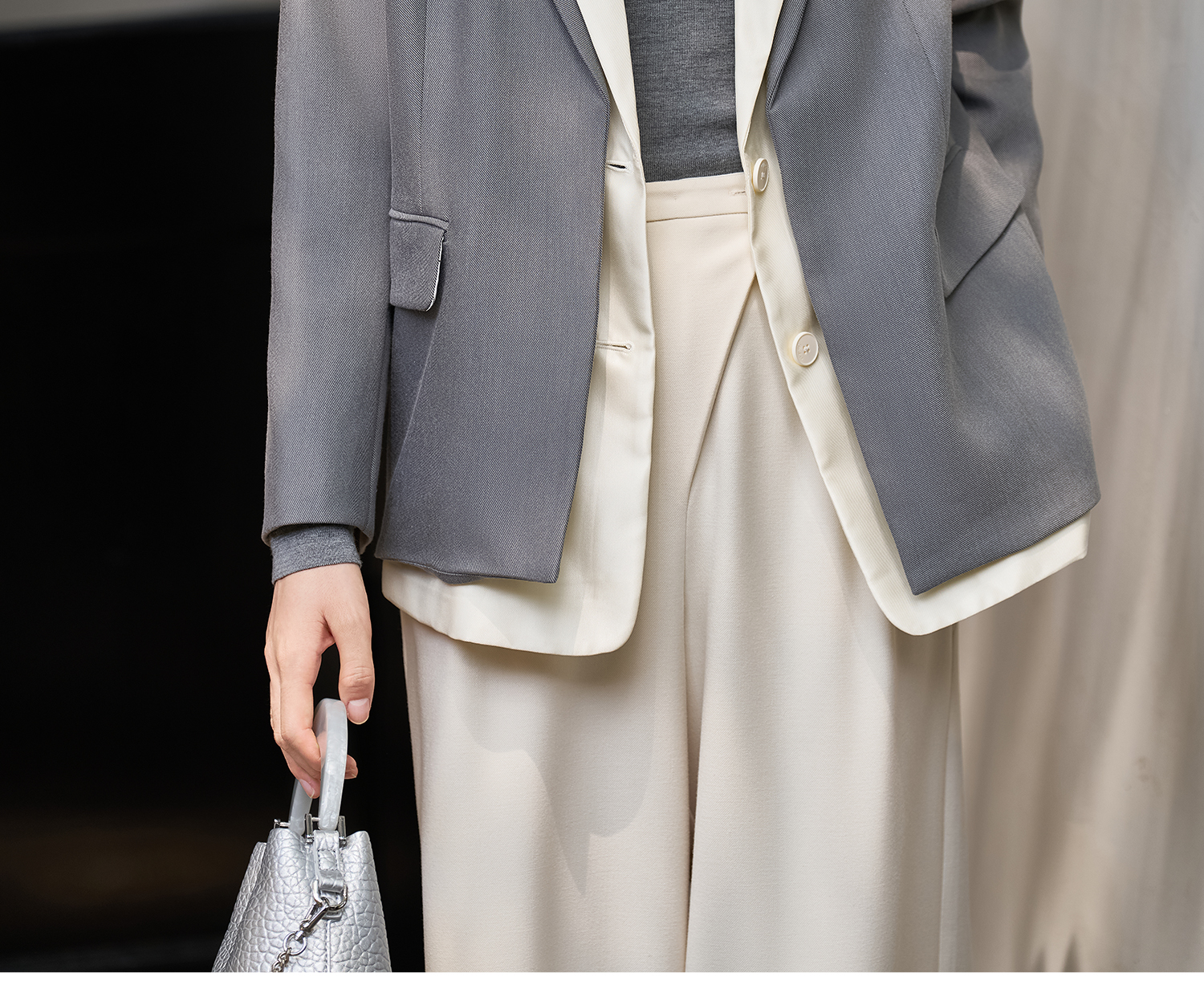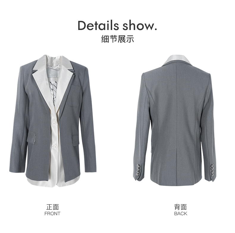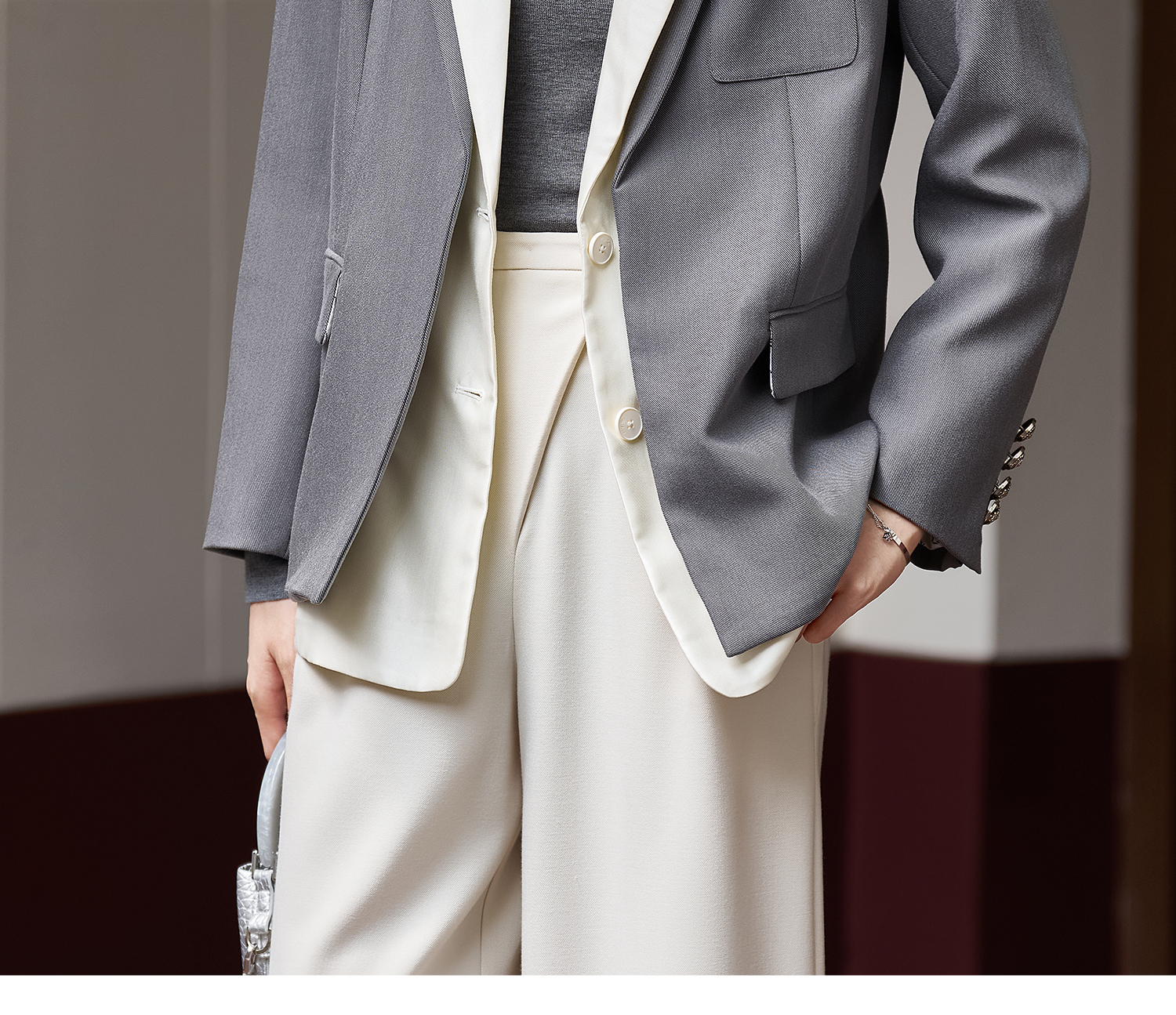 剩S/M/L/XL 芳外上衣流行外套新款休闲时尚撞色小众设计炸街西装女1871