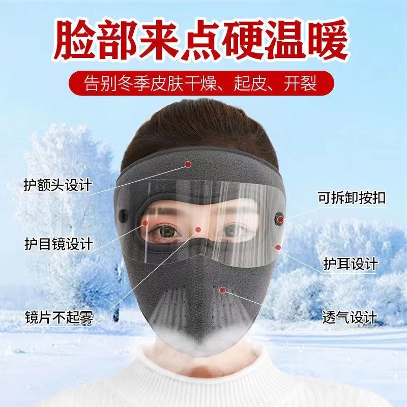 【拍1发2方便搭配使用】冬天防风防寒可水洗加厚电动车防尘护目透气防护男女保暖面罩口罩