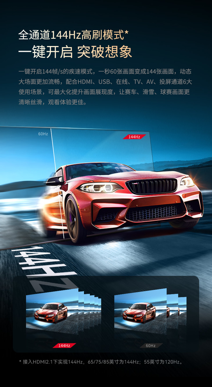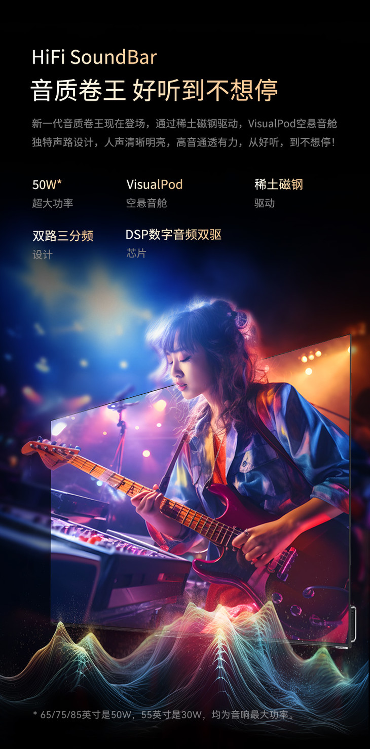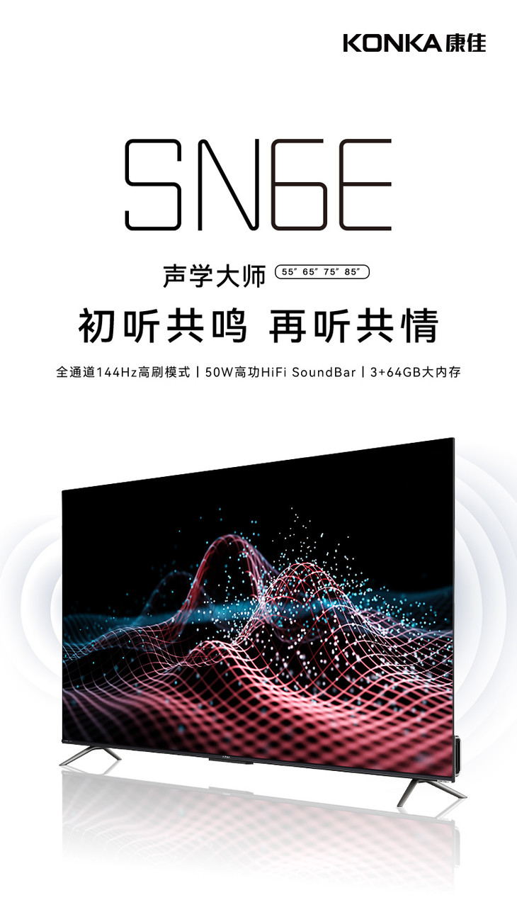 康佳电视 (912813)85SN6E 85英寸 声学大师 144Hz高刷 智能全面屏 MEMC 空悬音舱 二级能效 平板液晶电视机