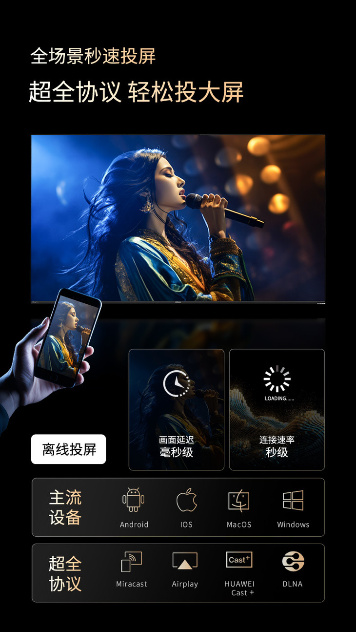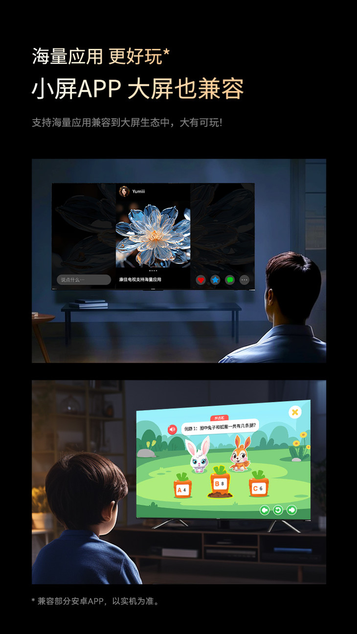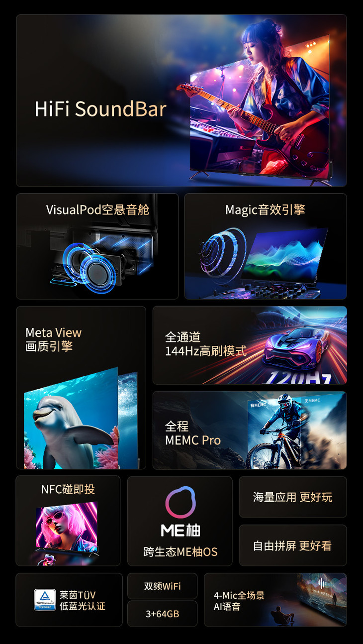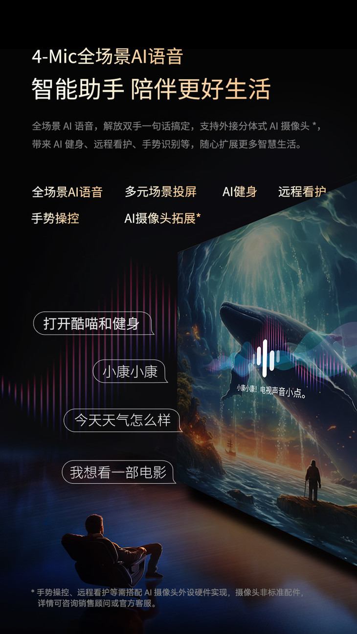 康佳电视 (912813)85SN6E 85英寸 声学大师 144Hz高刷 智能全面屏 MEMC 空悬音舱 二级能效 平板液晶电视机