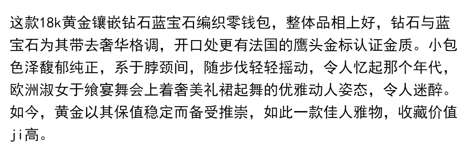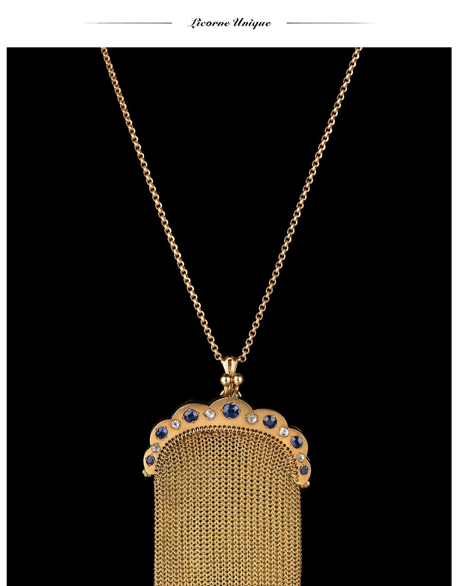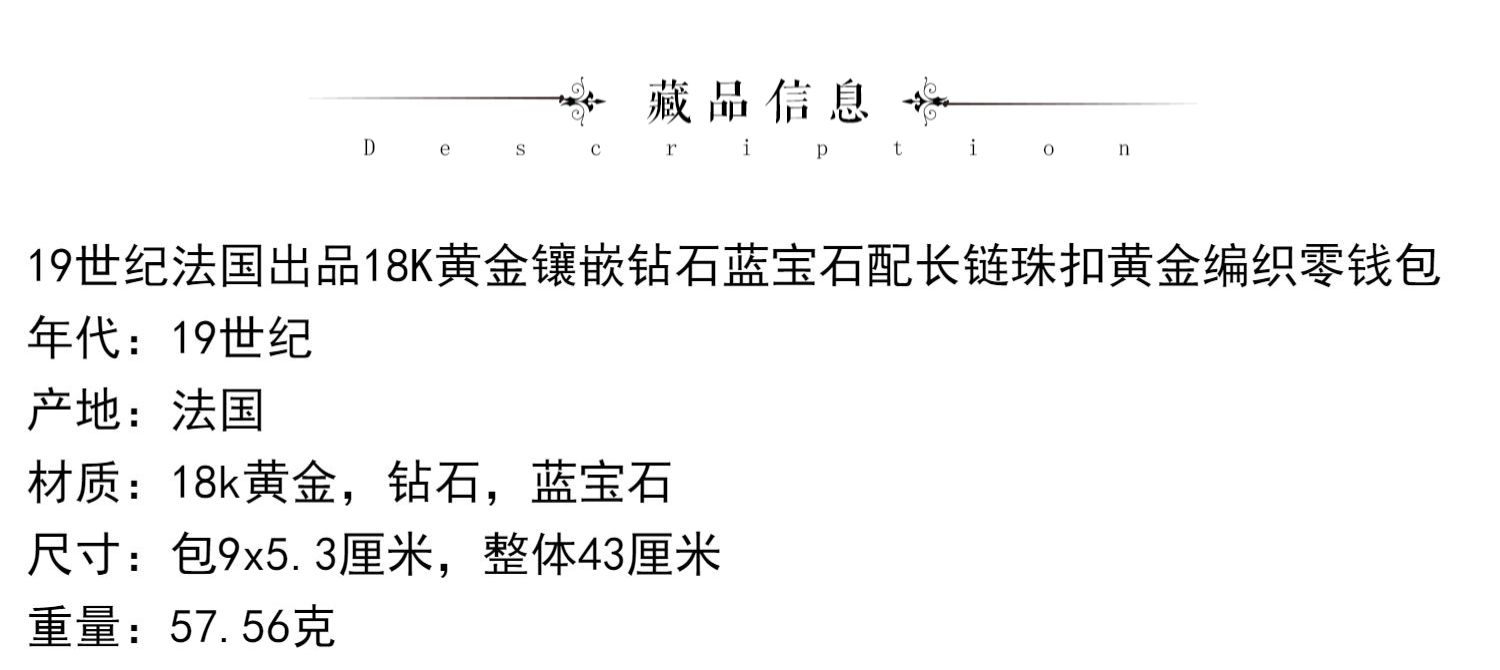 独角鹿西洋古董18K黄金镶嵌钻石蓝宝石配长链珠扣黄金编织零钱包