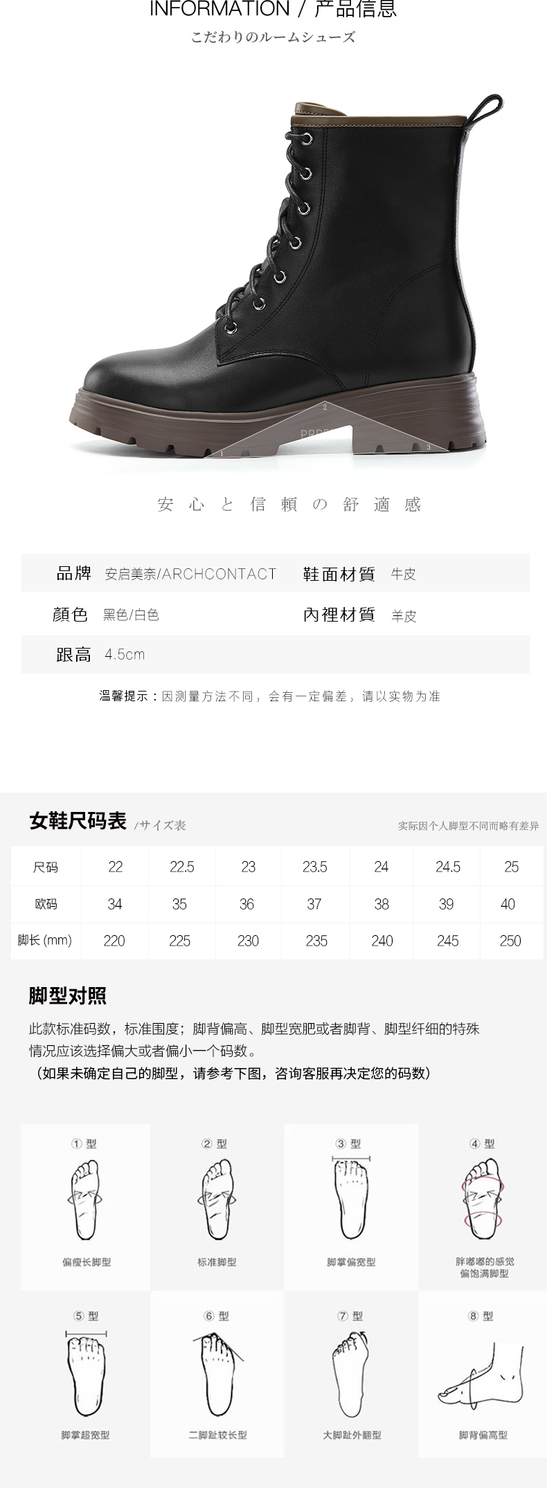 ARCHCONTACT安启美奈百搭舒适系带马丁靴52789