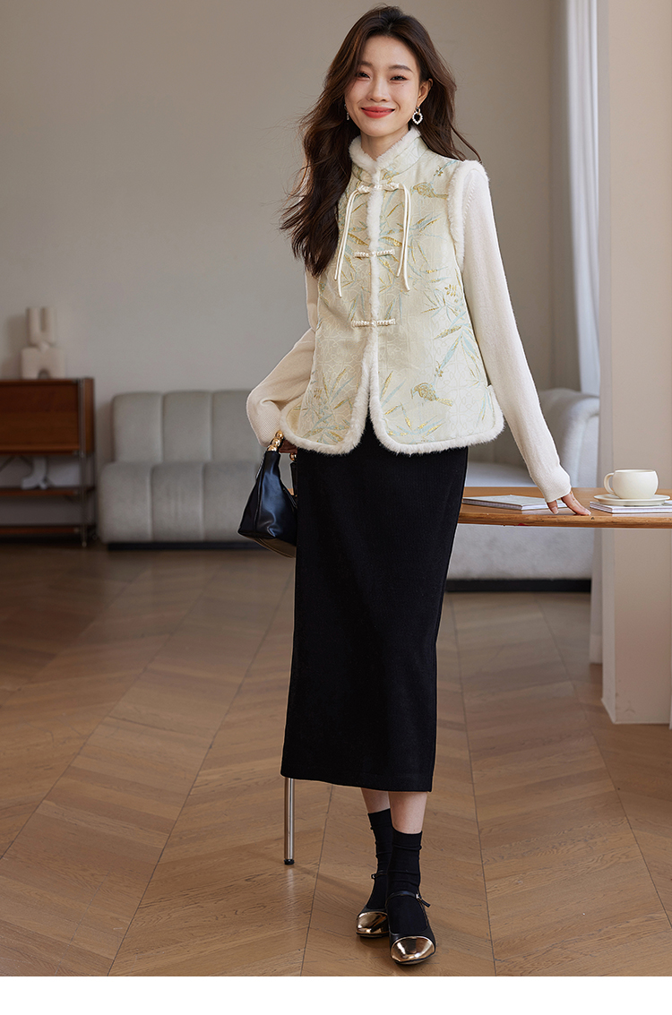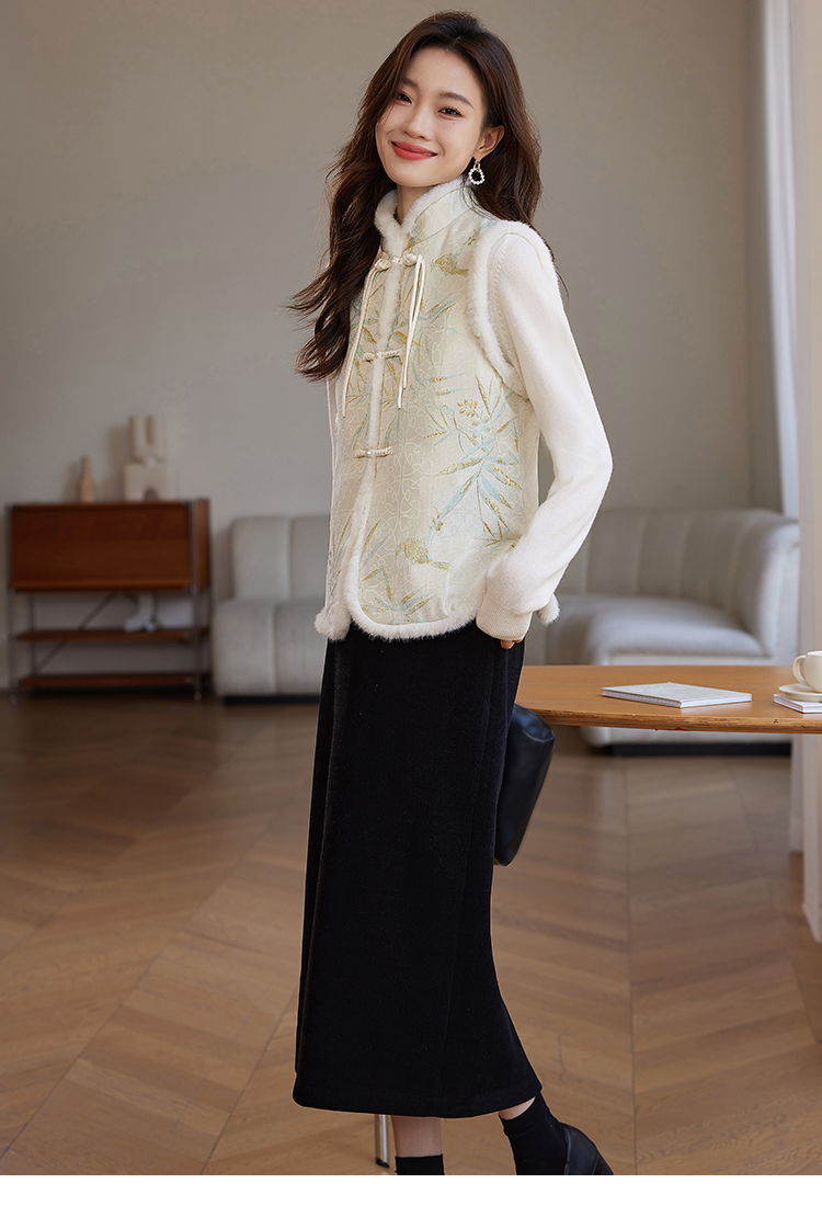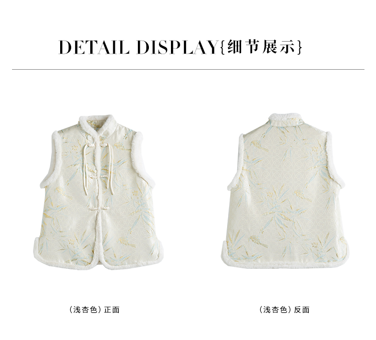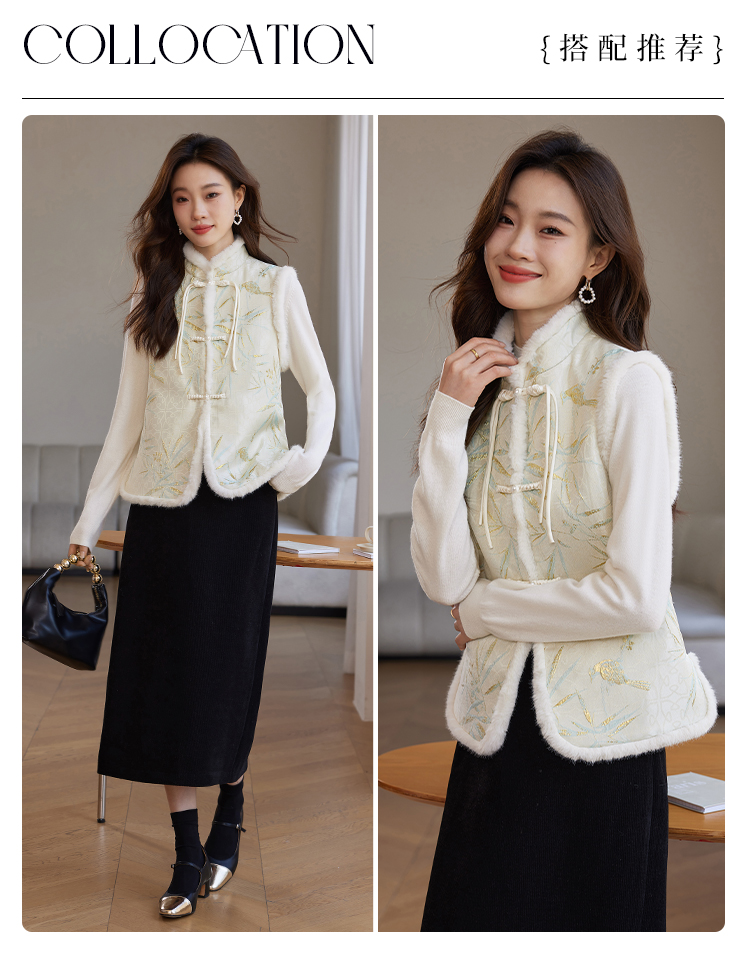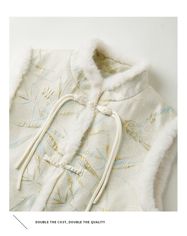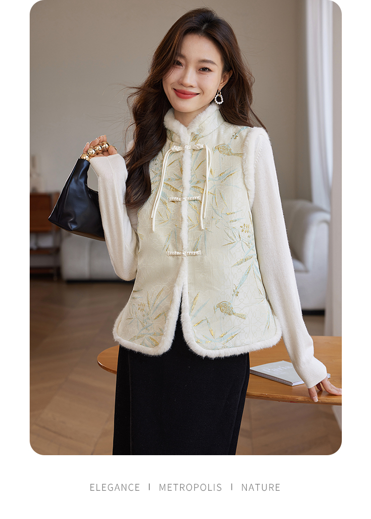 【年货节】熙世界新中式盘扣兔毛立领马甲短外套女冬夹棉国风无袖马夹上衣