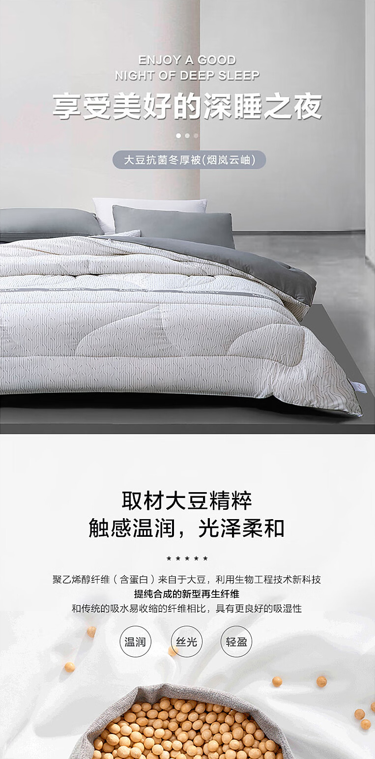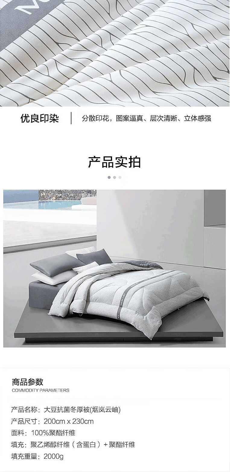 水星家纺M舒静安眠·负离子净醛·大豆抗菌冬厚被(烟岚云岫)