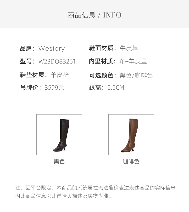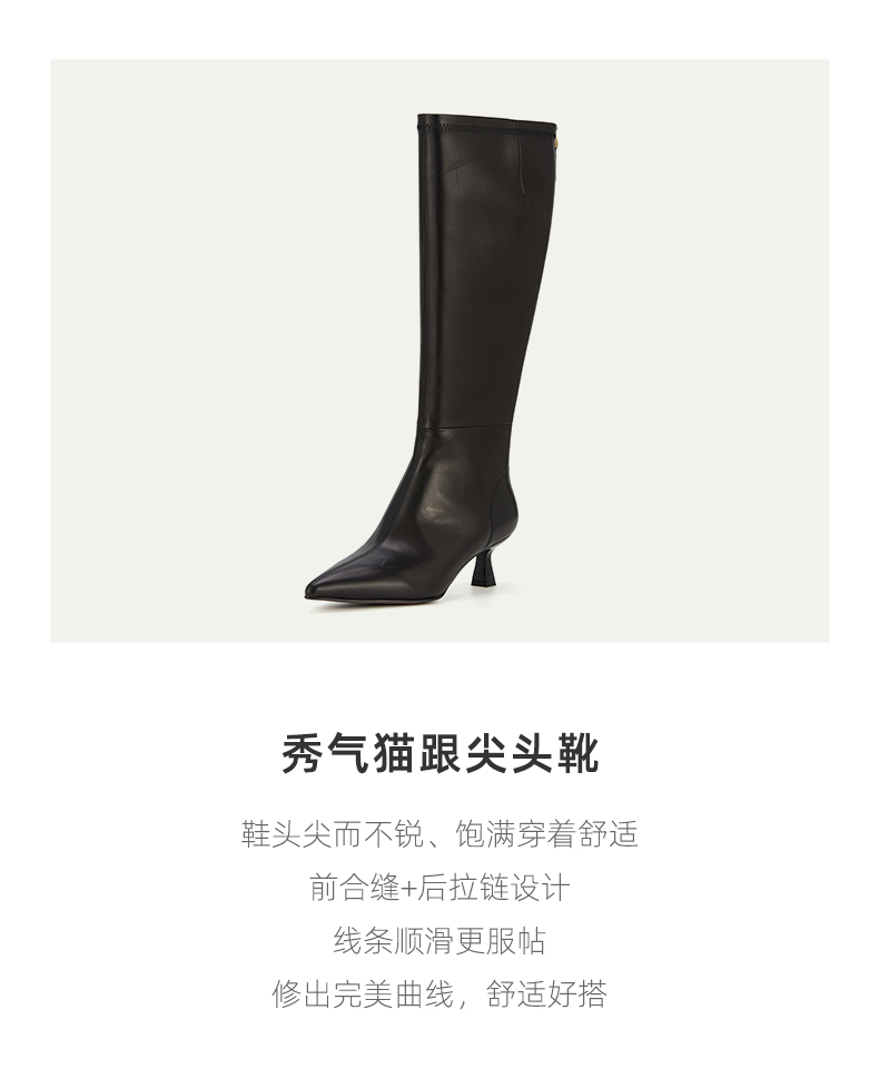 westory2023秋季新品秀气猫跟尖头靴后拉链舒适好搭骑士靴W23DQ83261