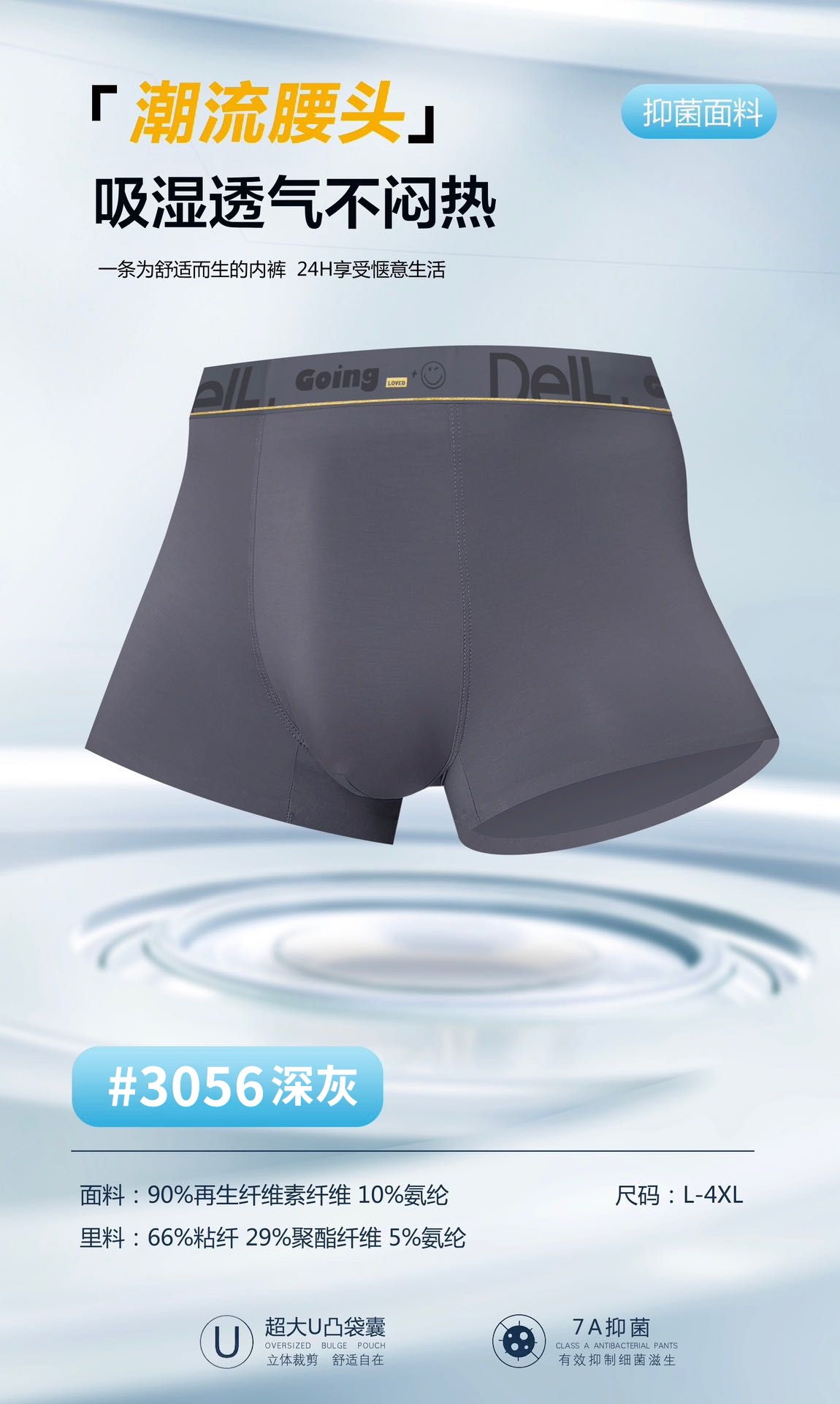 男士50支莫代尔腰头印花撞色无痕平角内裤3055/3056
