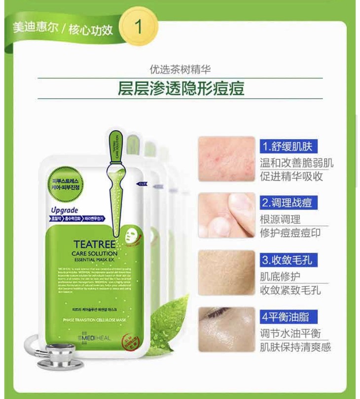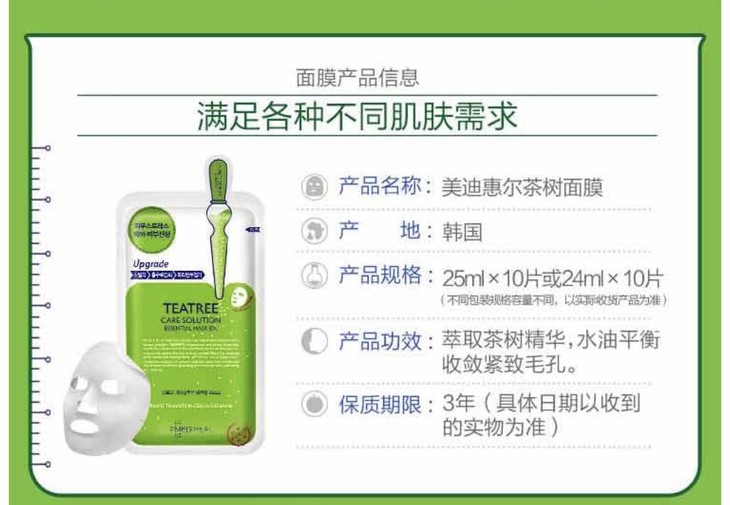 【海关保税直发】韩国美迪惠尔-胶原蛋白面膜/绿色茶树控油/10片/--会员5折